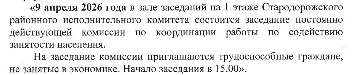 Домой официально 9 апреля пройдет заседание комиссии по содействию занятости населенияофициально9 апреля пройдет заседание комиссии по содействию занятости населенияОт redactor - 08.04.2026640FacebookTwitterPinterestWhatsApp ЭТО МОЖЕТ БЫТЬ ИНТЕРЕСНОЕЩЕ ОТ АВТОРАПредседатель Комитета госконтроля Беларуси проведет прямую телефонную линию с жителями Минской областиВозможны перерывы в работе ByFly, Zala и связи в Стародорожском районе 23 апреляЗа медленный интернет операторов будут штрафовать