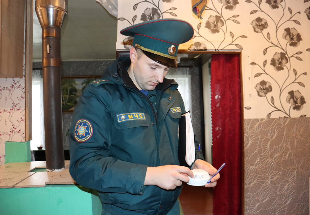 Агрогородок Языль. Многоквартирный жилой дом. Поднимаемся в квартиру, где проживает семья, находящаяся в социально опасном положении. Здесь «вопросы МЧС» закрыты: паровое отопление в рабочем состоянии, извещатели в каждой жилой комнате. В разговоре со взрослыми инспектор уточняет, знают ли хозяева, как позвонить спасателям. Напоминает офицер и об уголовной ответственности за оставление детей без присмотра, на что хозяева заверяют: «Кто-то всегда дома, одних малышей не бросаем».