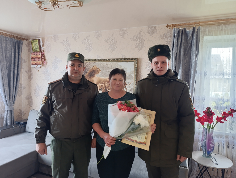 Женщины, чьи сыновья проходят срочную службу в 8-й бригаде радиационной, химической и биологической защиты, принимали сегодня поздравления с Днём Матери прямо на рабочем месте или дома.