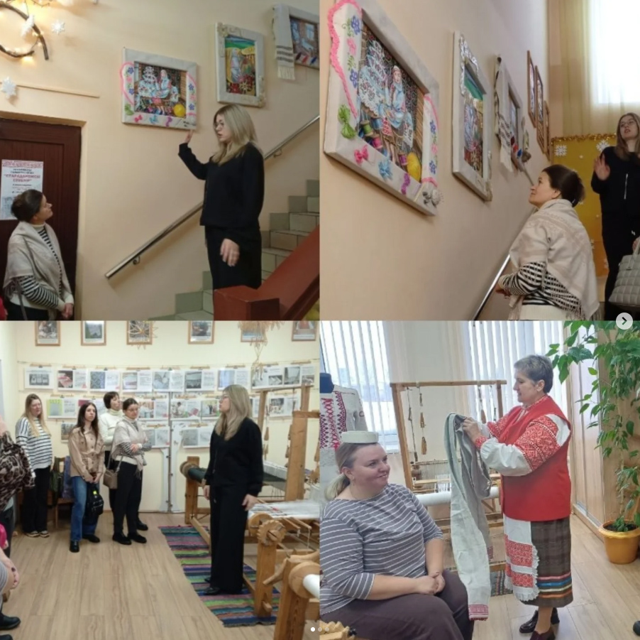 Удзельнікам была прапанавана інтэрактыўная гульня «Знайдзі арнамент». Самыя актыўныя ўдзельнікі атрымалі сувеніры ў якасці заахвочвання. Госці таксама азнаёміліся з работай майстра Таццяны Гутырчык, якая займаецца над новым проектам прысвечаны ручной апрацоўцы лёну. Яны наведалі экспазіцыю, прысвечаную нематэрыяльнай культурнай каштоўнасці, звязаную з вырабам дываноў тэхніцы аплікацыі саломкай па тканіне, і выставу «Не забытыя традыцыі: паясы», дзе прайшоў майстар-клас па пляценні паясоў на калодачцы.