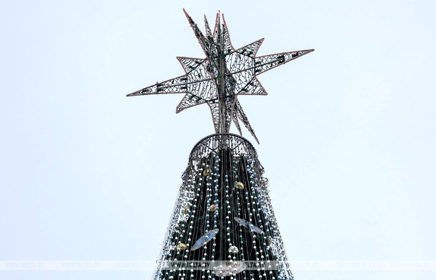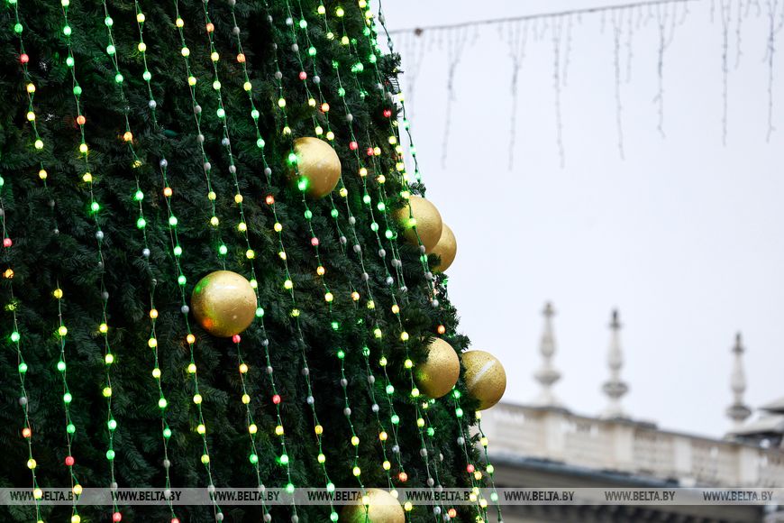 Главная новогодняя елка Беларуси традиционно устанавливается на Октябрьской площади в Минске.