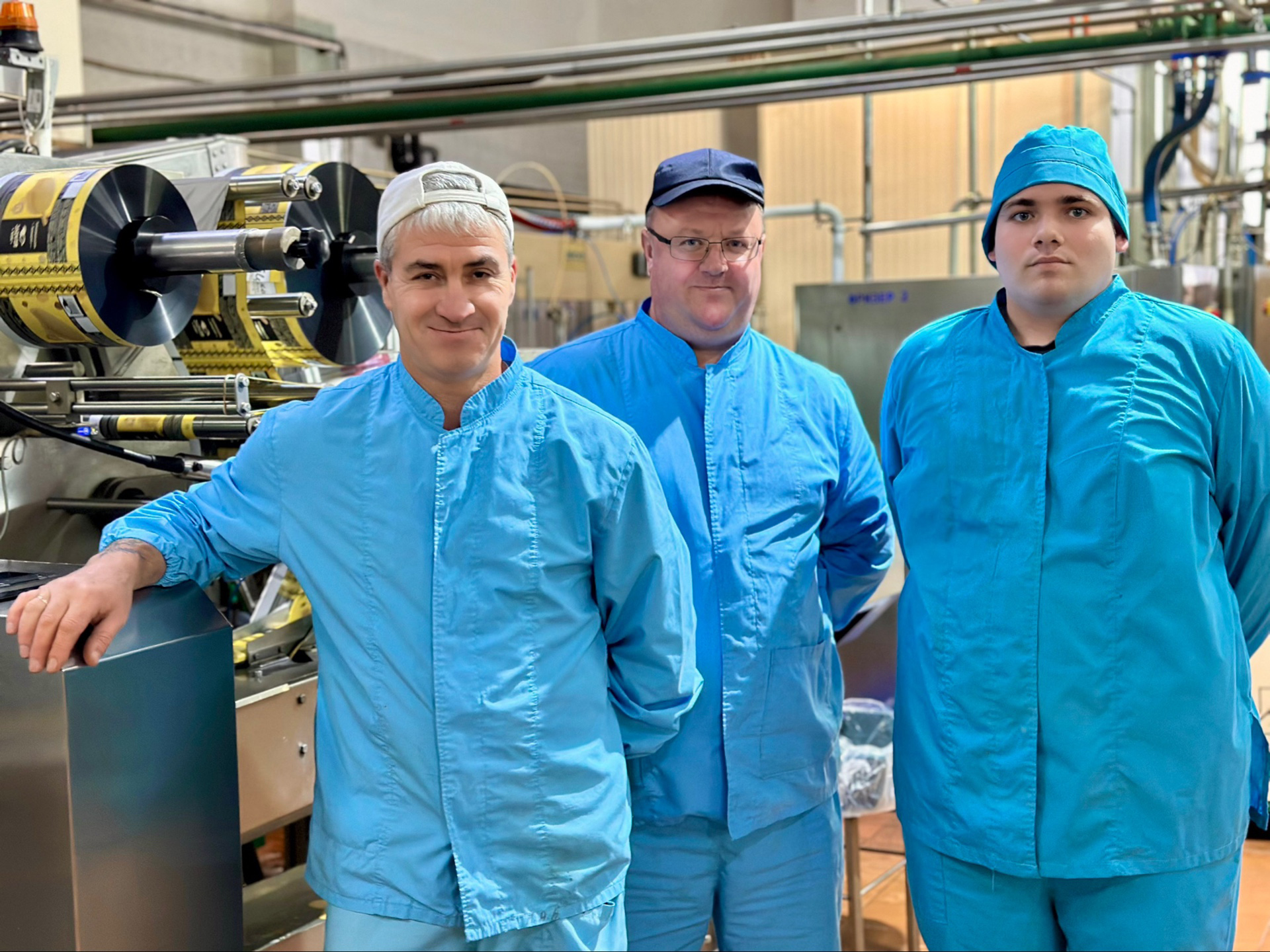 А как же наше сливочное масло? Работа кипит и на участке по его производству. Если пару лет назад выпускали в месяц по 4 тонны шоколадного масла, то сегодня уже 25 тонн. Потребность в этом продукте выросла, причем большая его часть отправляется за рубеж — в Россию и Казахстан.