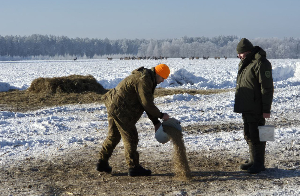 Кушать подано: районная организационная структура Белорусского общества охотников и рыболовов организовала подкормку диких животных в холода.