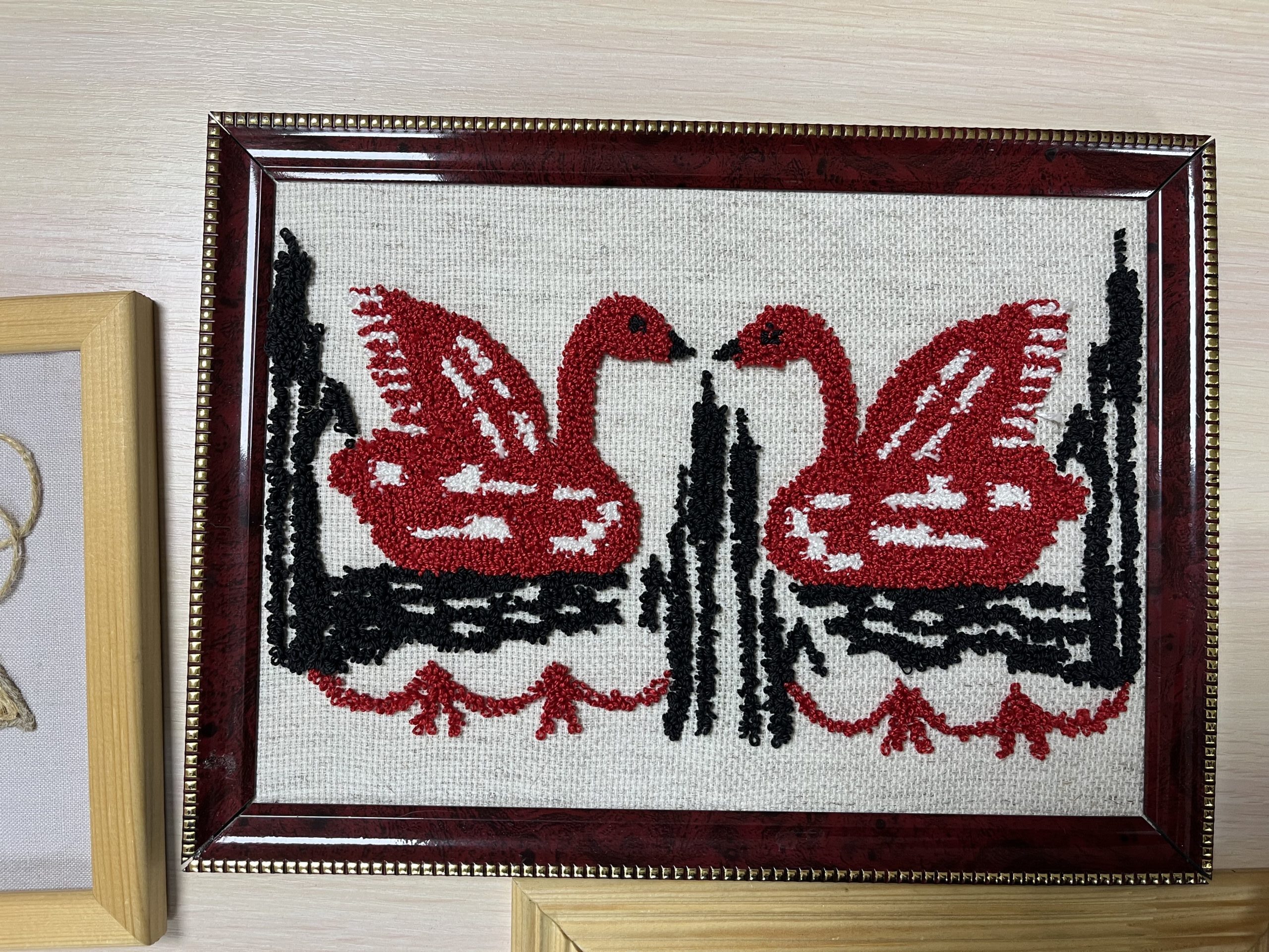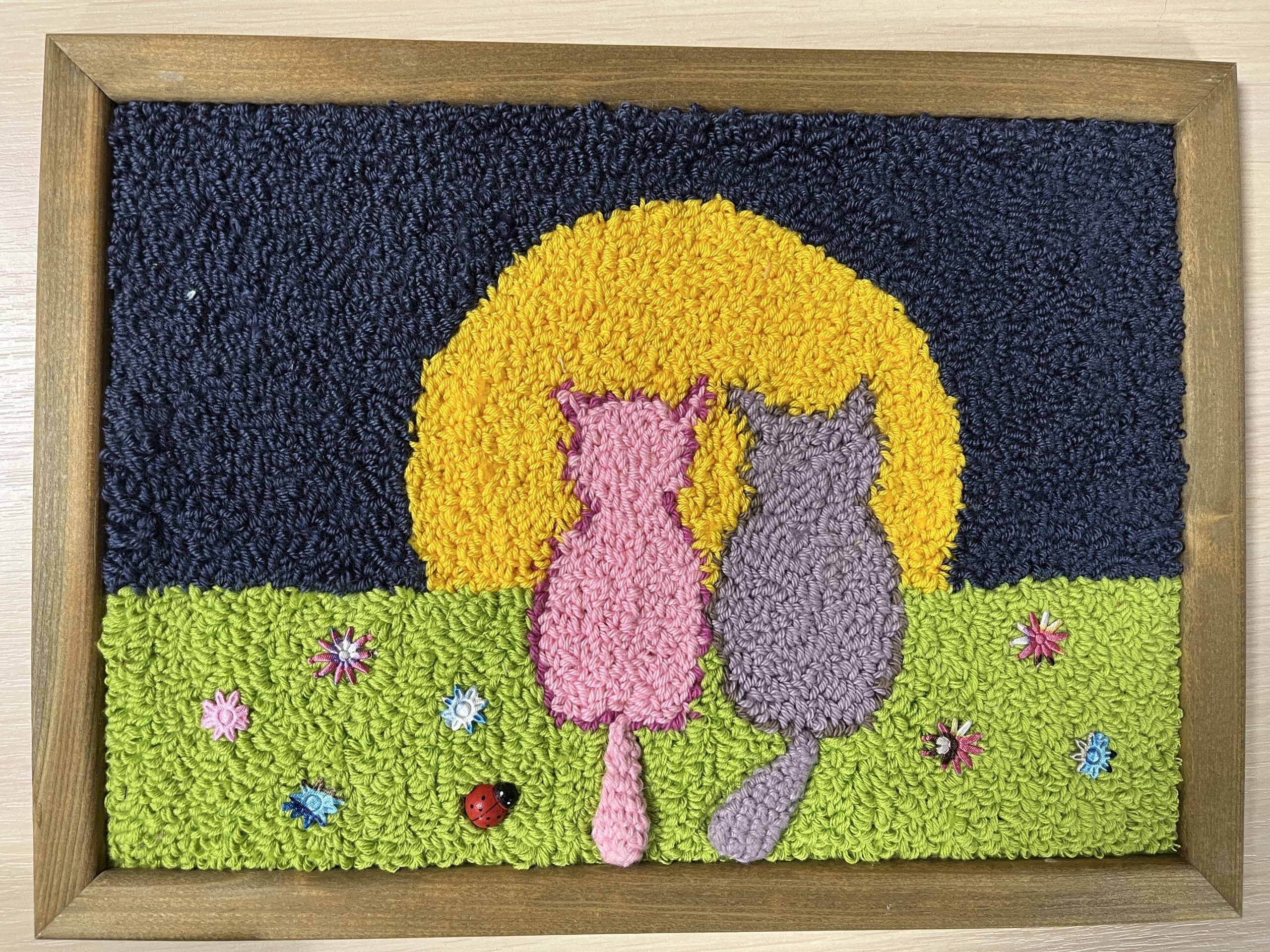 Затем увлеклась ковровой вышивкой. Она создает объемные, фактурные, ворсистые изделия из пряжи.