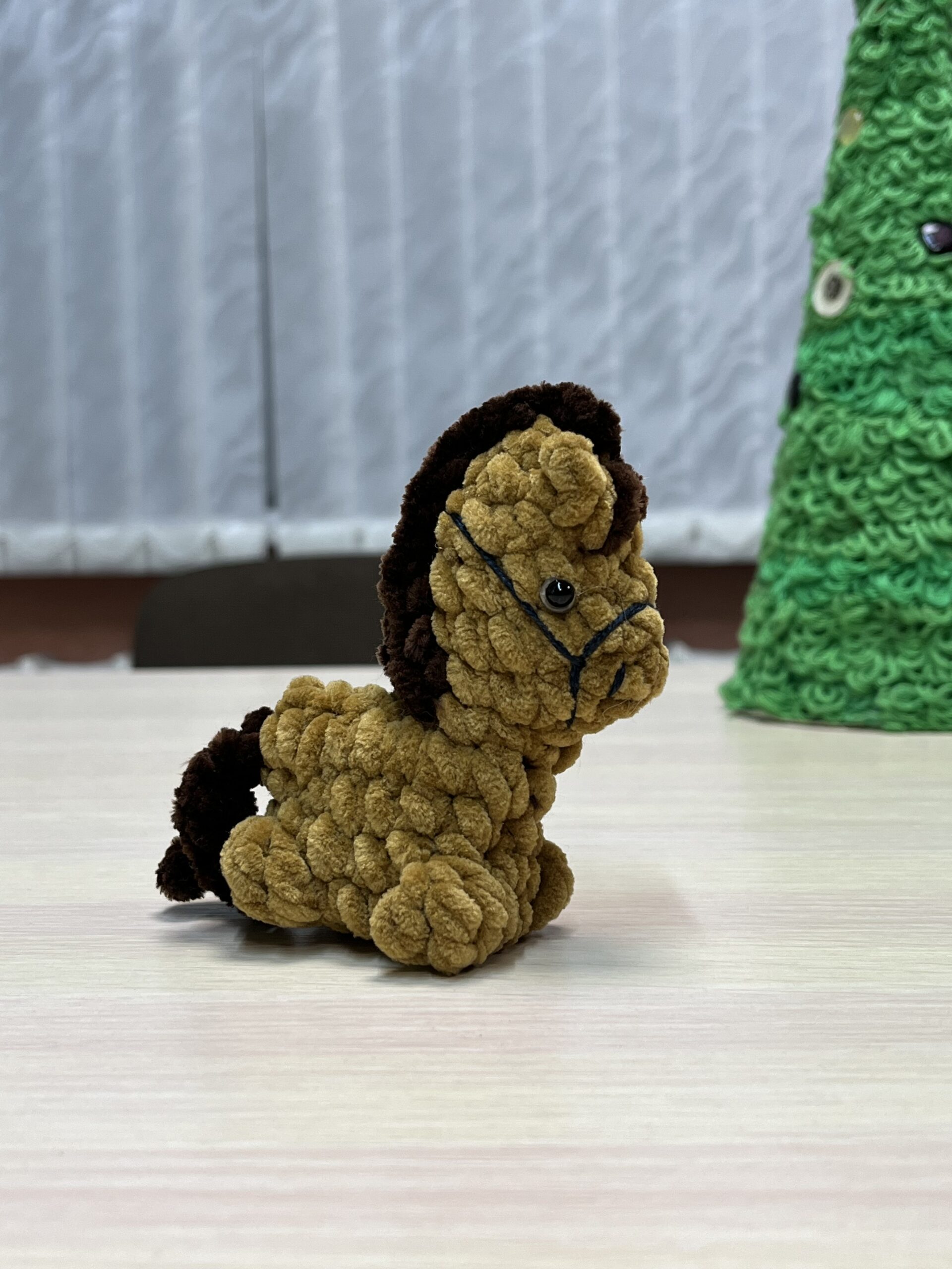 «Только недавно закончила вязать очередную игрушку — большого лося. И уже к Новому году родственница попросила сделать маленьких сувенирных лошадок — символ следующего года. Игрушки делаю из плюшевой пряжи. Они выходят очень мягкими, приятными наощупь».