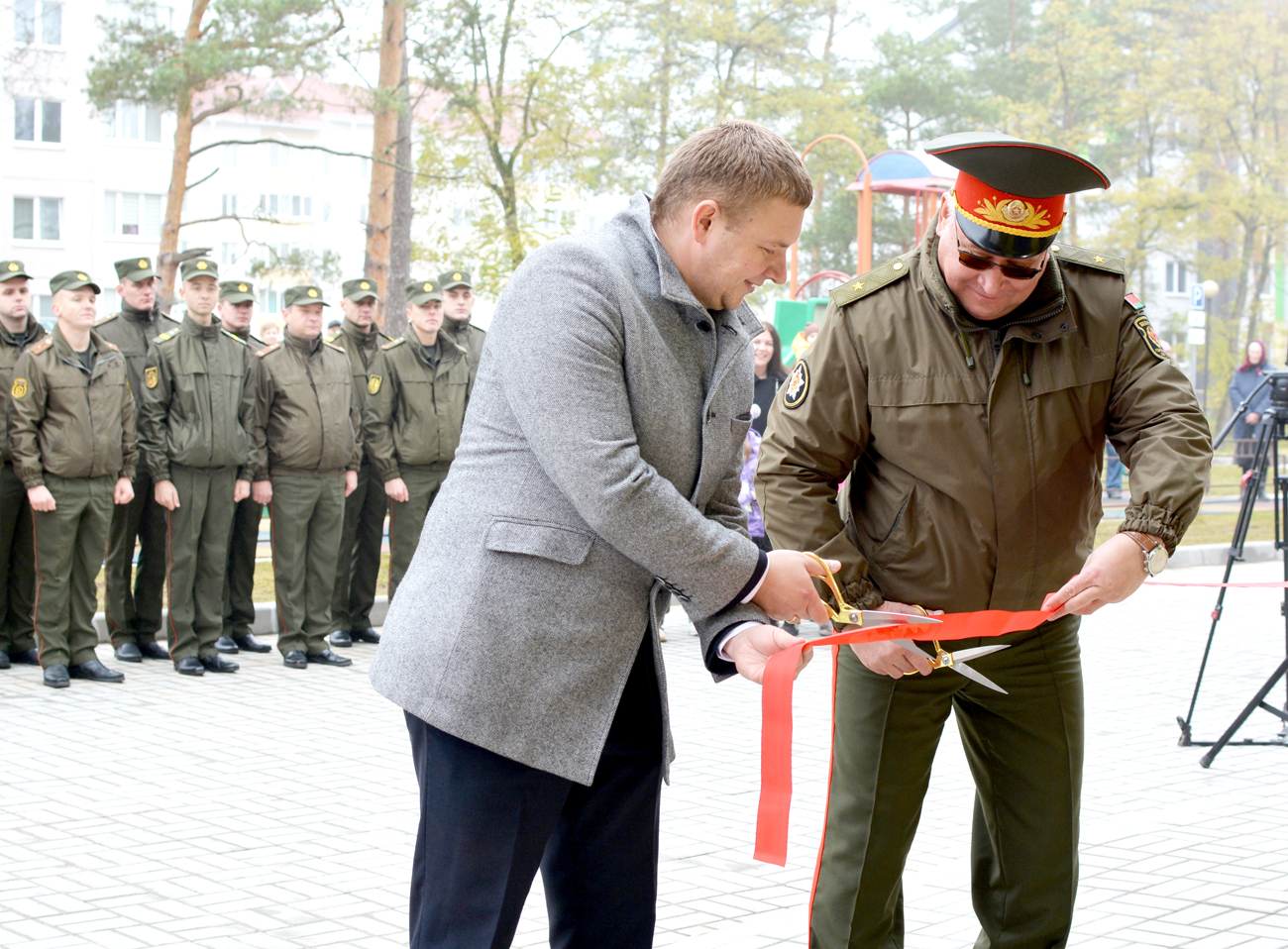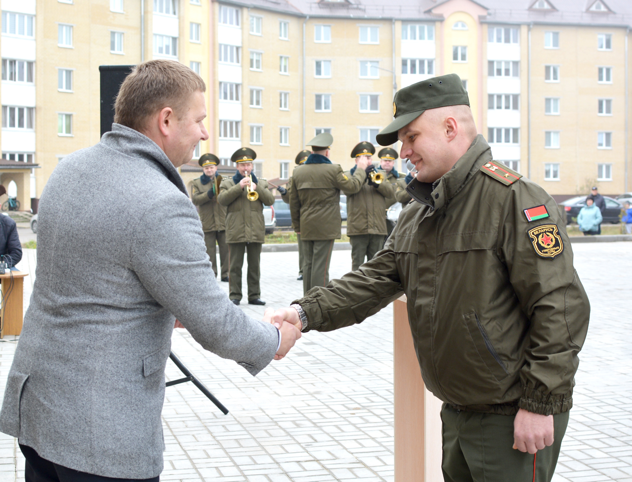 Поздравить новоселов пришли начальник Генерального штаба Вооруженных Сил — первый заместитель министра обороны Республики Беларусь Павел Муравейко, председатель Стародорожского райисполкома Дмитрий Сосинович, начальник войск РХБЗ-начальник управления РХБЗ и экологии Генерального штаба Вооруженных Сил Вячеслав Старков. Гости пожелали военнослужащим уюта в квартирах, благополучия, добра и чтобы в них всегда звучал детский смех.