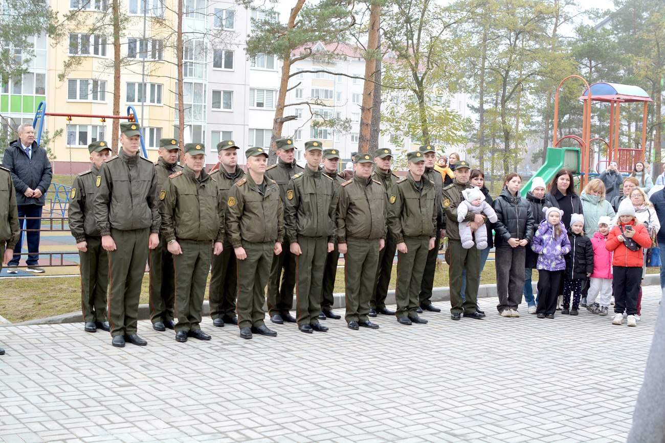 «Открытие такого объекта — знаковое событие для нас. Это первый многоквартирный дом для военнослужащих в нашем районе. Отрадно, что в него заселяются семьи с детьми, ведь для многих из них в приоритете была цель приобрести жилье, — отметил Дмитрий Сосинович. — С помощью государства у них это получилось. Уверен, получение ключей от новых квартир положительно скажется на несении службы. Наши военнослужащие постоянно находятся на работе. Любая задача, которая перед ними стоит, выполняется легче, когда они уверены, что дома все хорошо. Крепкий семейный тыл поможет им укреплять рубежи нашей Родины».