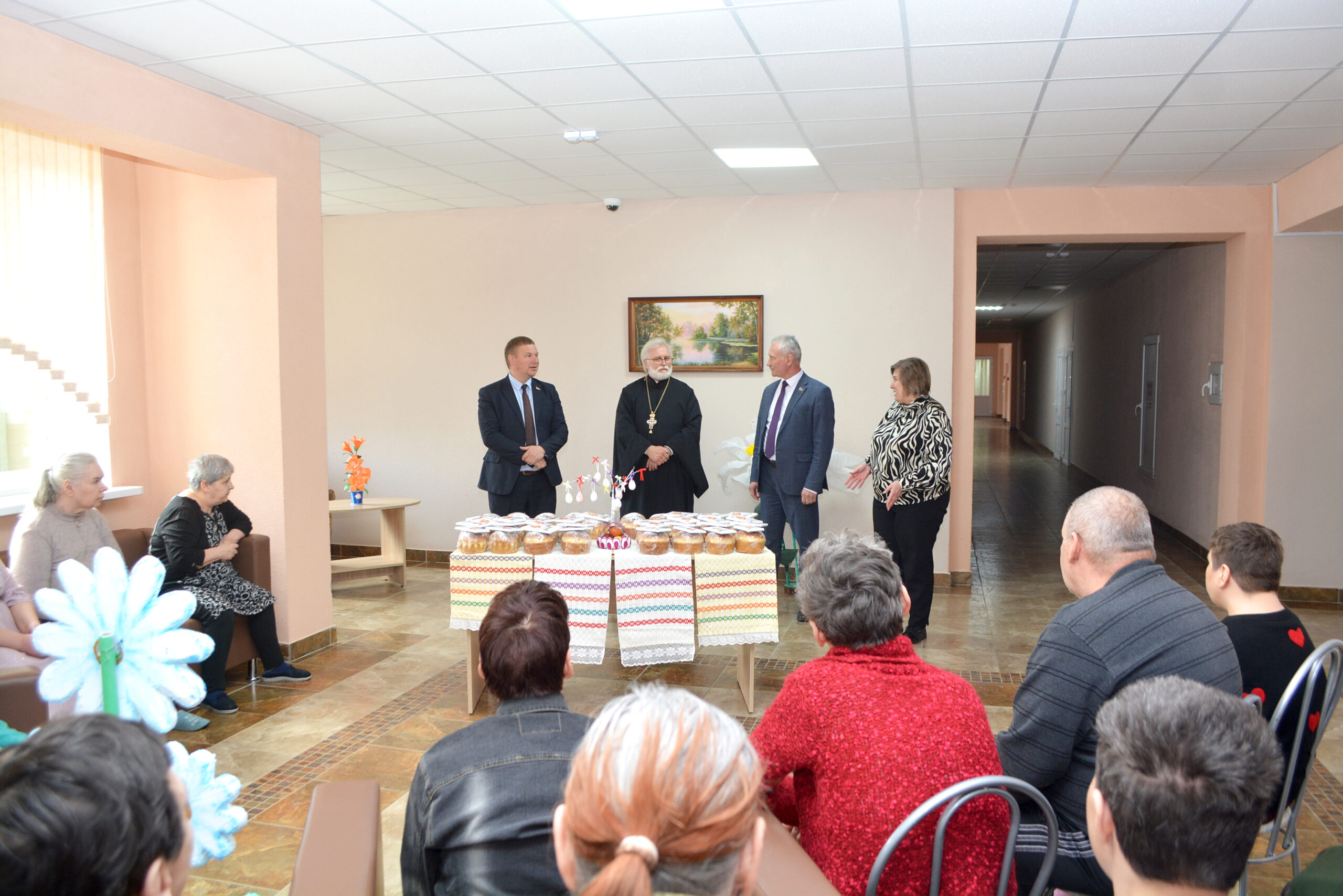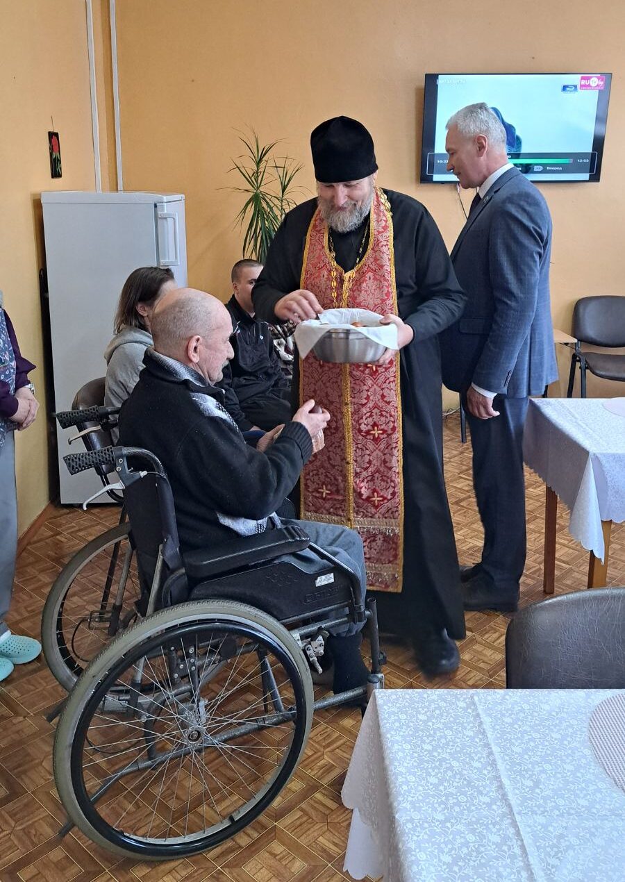 Искренние пожелания здоровья, крепости духа и мира в душе сопровождались вручением пасхальных куличей: их вручили каждому постояльцу как частичку домашнего тепла и духовной радости.