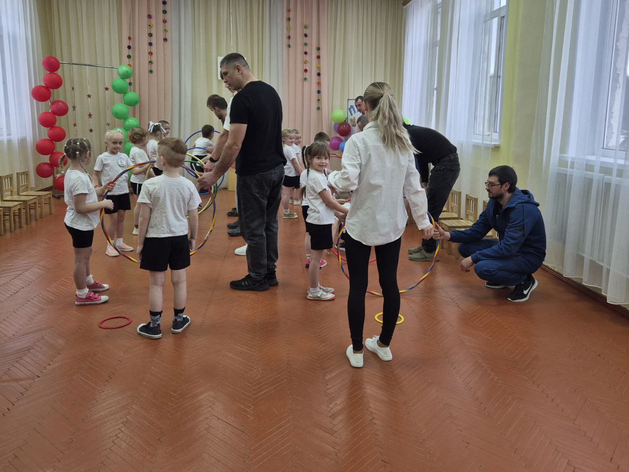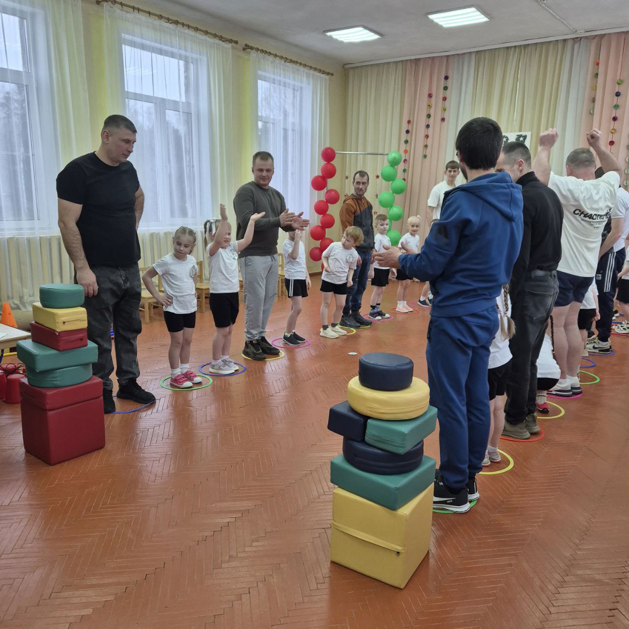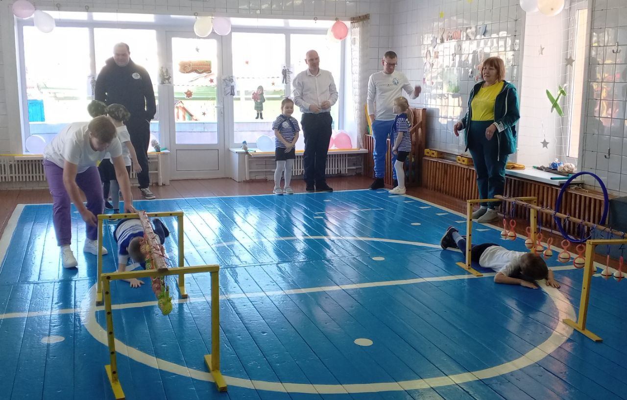Праздничный марафон: в Старых Дорогах воспитанники детсада соревновались вместе с папами
