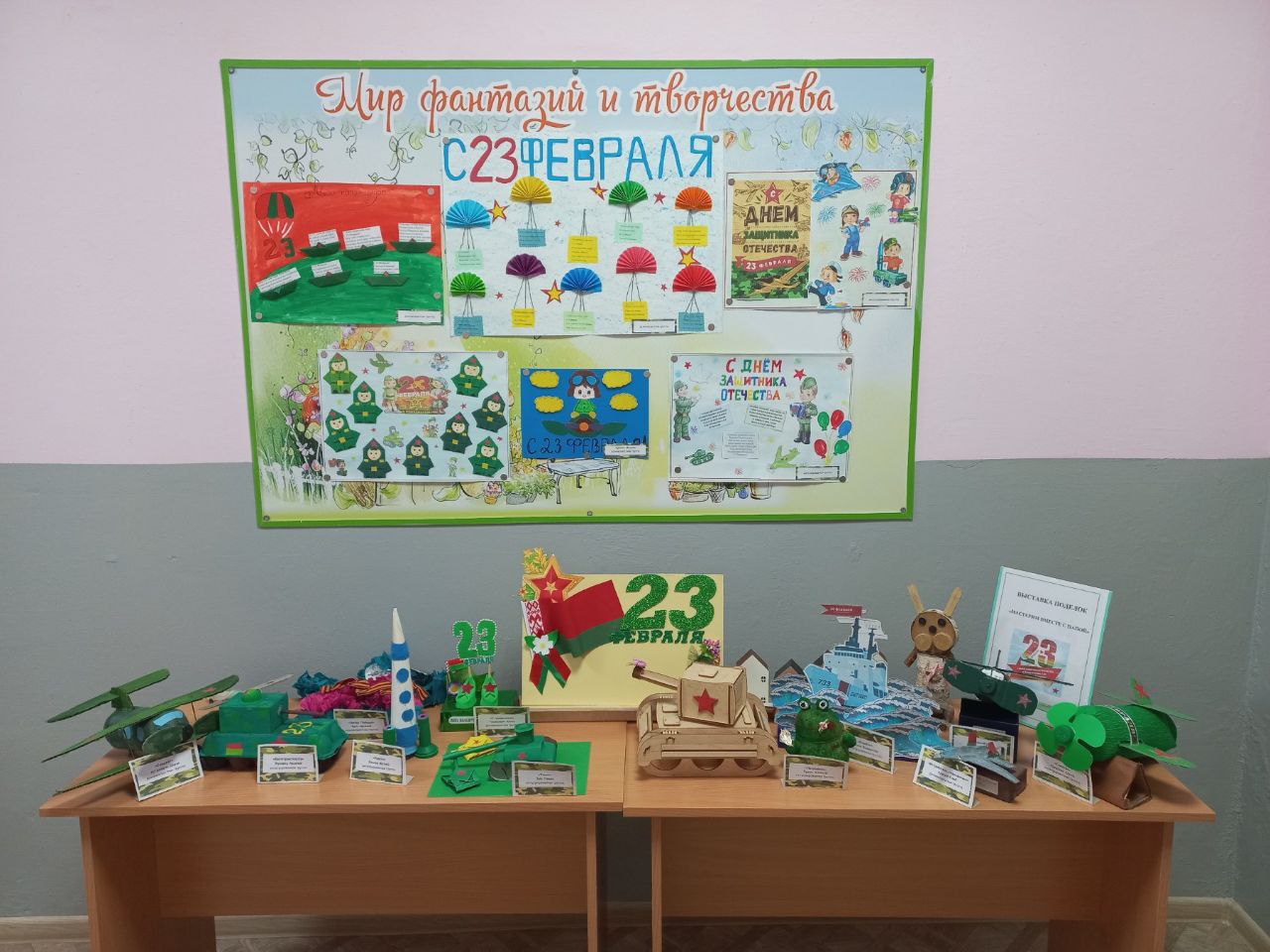 Выставка «Мастерим вместе с папой»: фойе украсили поделки, созданные в тандеме детей и родителей. Творческий процесс позволил семьям провести время вместе и проявить фантазию.