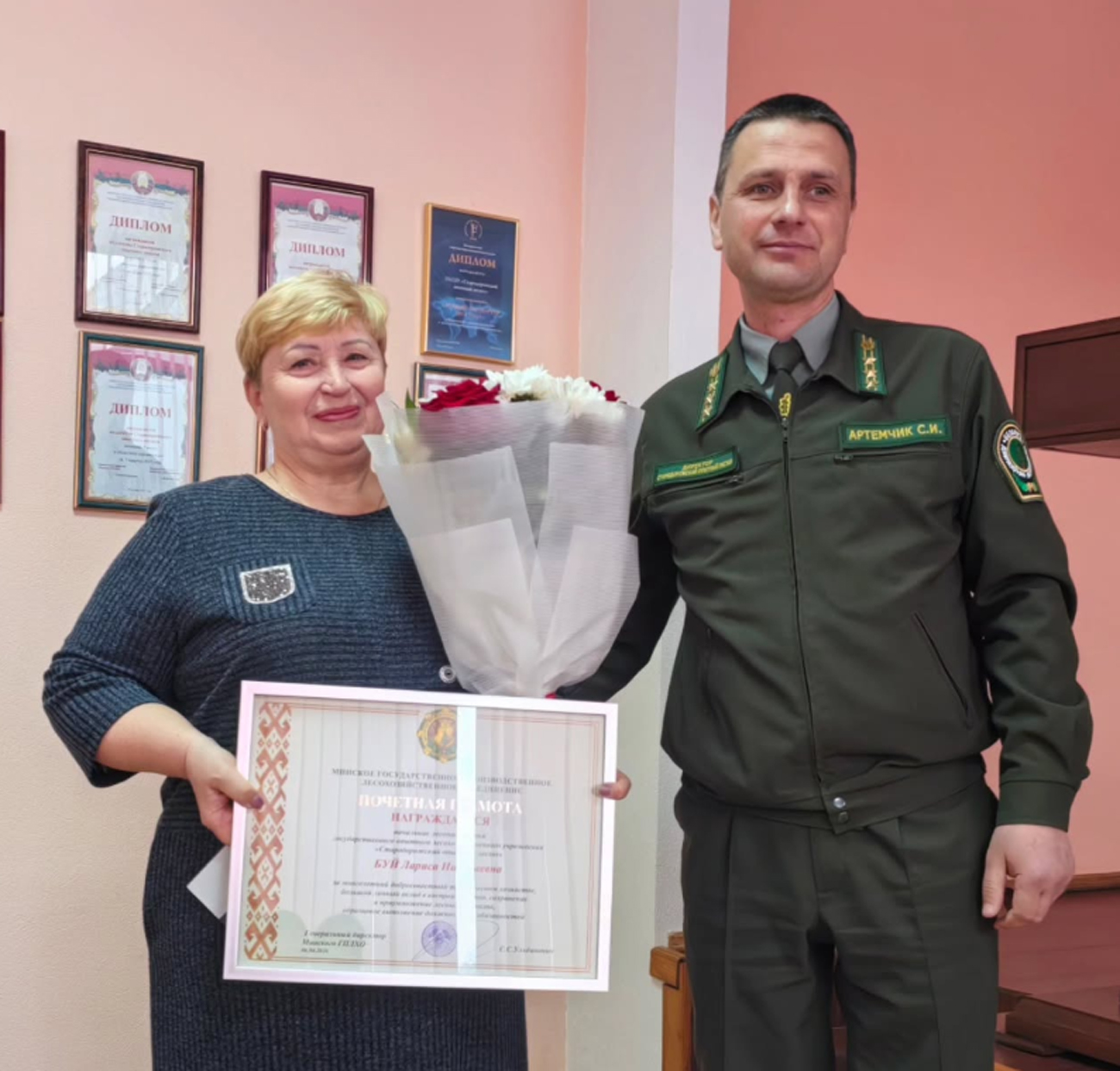 За многолетний добросовестный труд и значительный личный вклад в развитие лесного хозяйства Лариса Николаевна награждена Почетной грамотой Минского ГПЛХО. Её профессионализм, преданность делу и чуткое отношение к делу всегда служили примером для коллег.