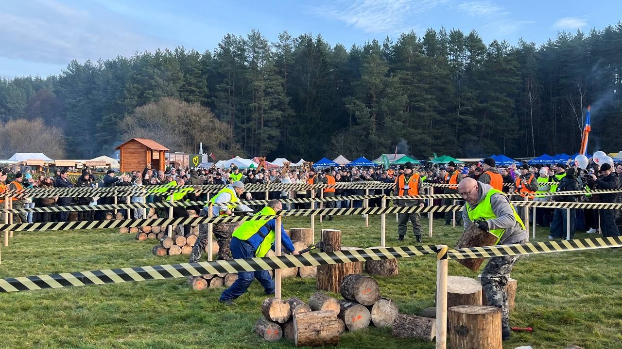 Участники соревнуются в таких дисциплинах, как колка дров, переруб бревна, а также в новых конкурсах, например, «Одним ударом!».