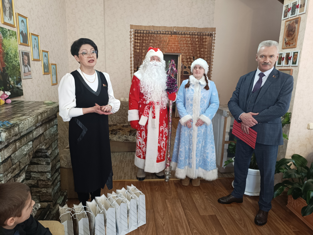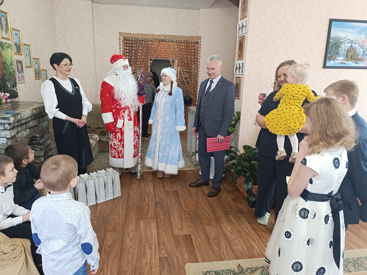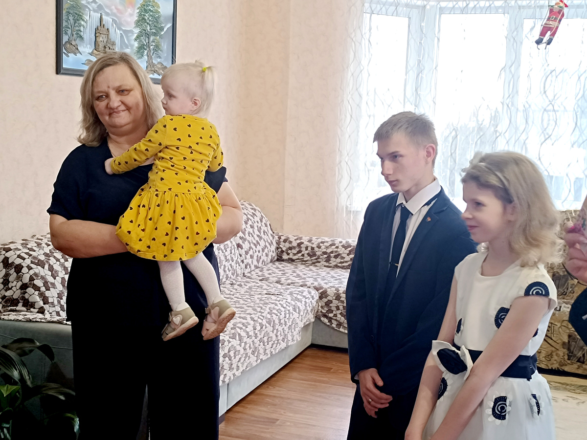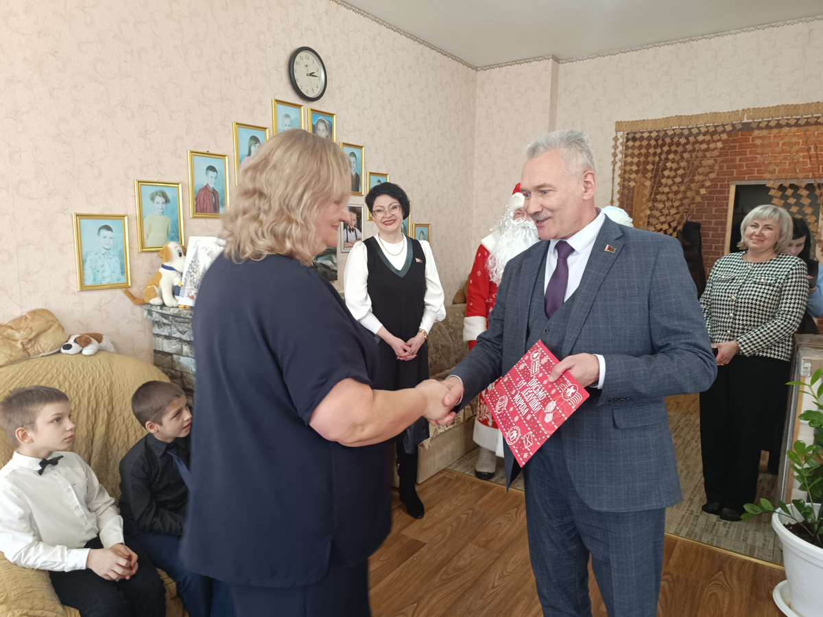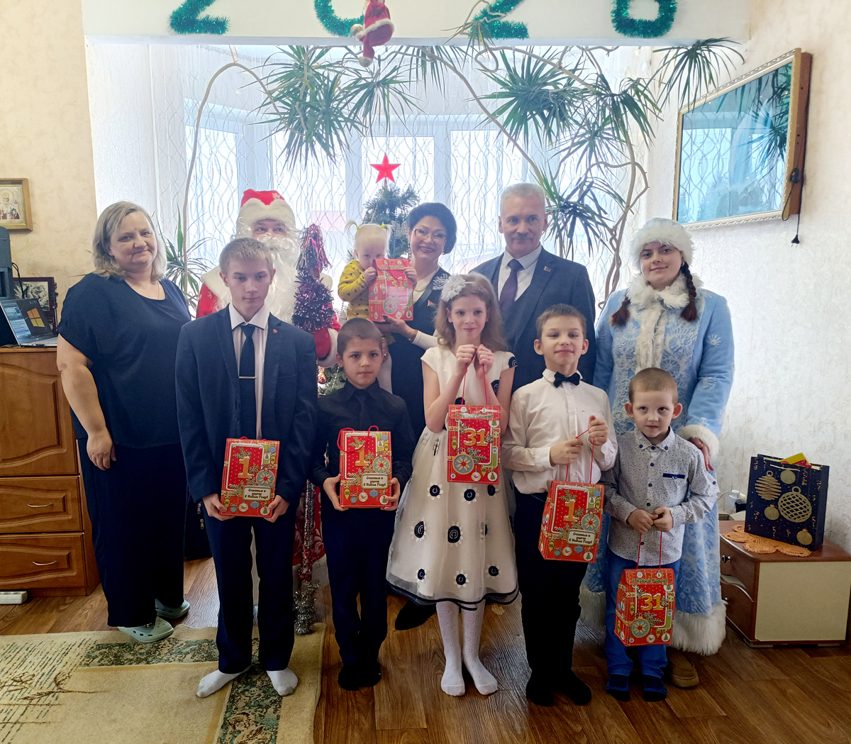 Поздравить с наступающими праздниками семью, в которой семеро детей обрели второй дом, приехали депутат Палаты представителей Национального собрания Республики Беларусь Елена Пархимчик и заместитель председателя райисполкома Владимир Девятень.