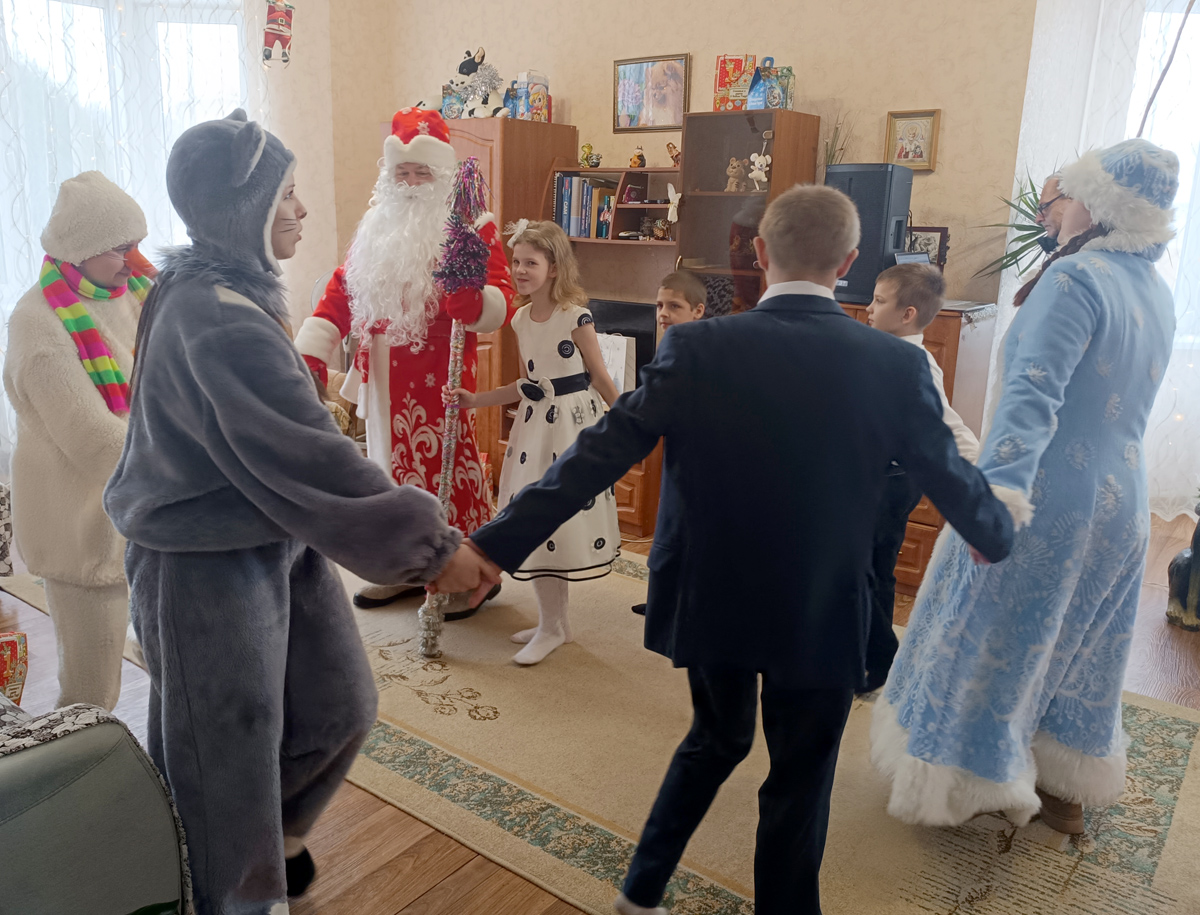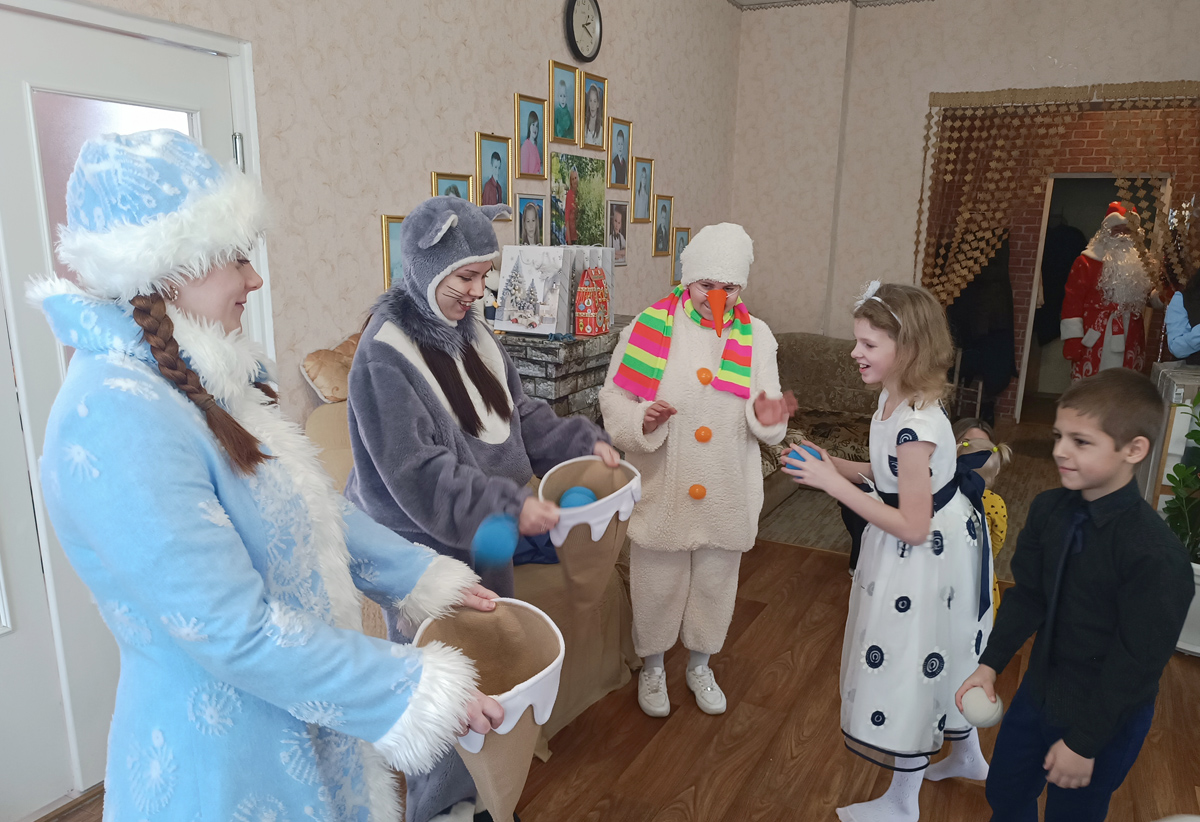 Праздничное настроение детям создали артисты районного центра культуры и отдыха. Дедушка Мороз, Снегурочка и другие сказочные персонажи провели для ребят развлекательно-игровую программу.