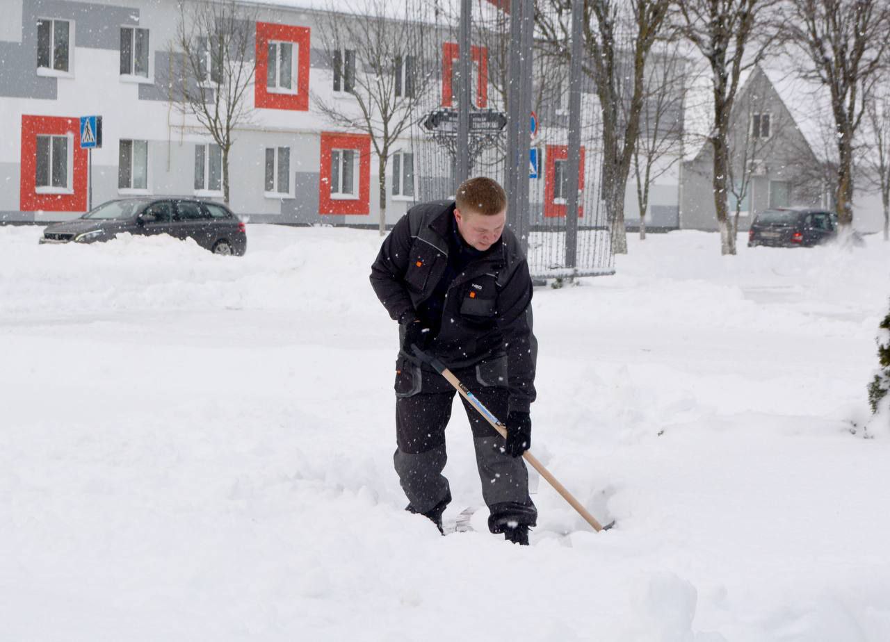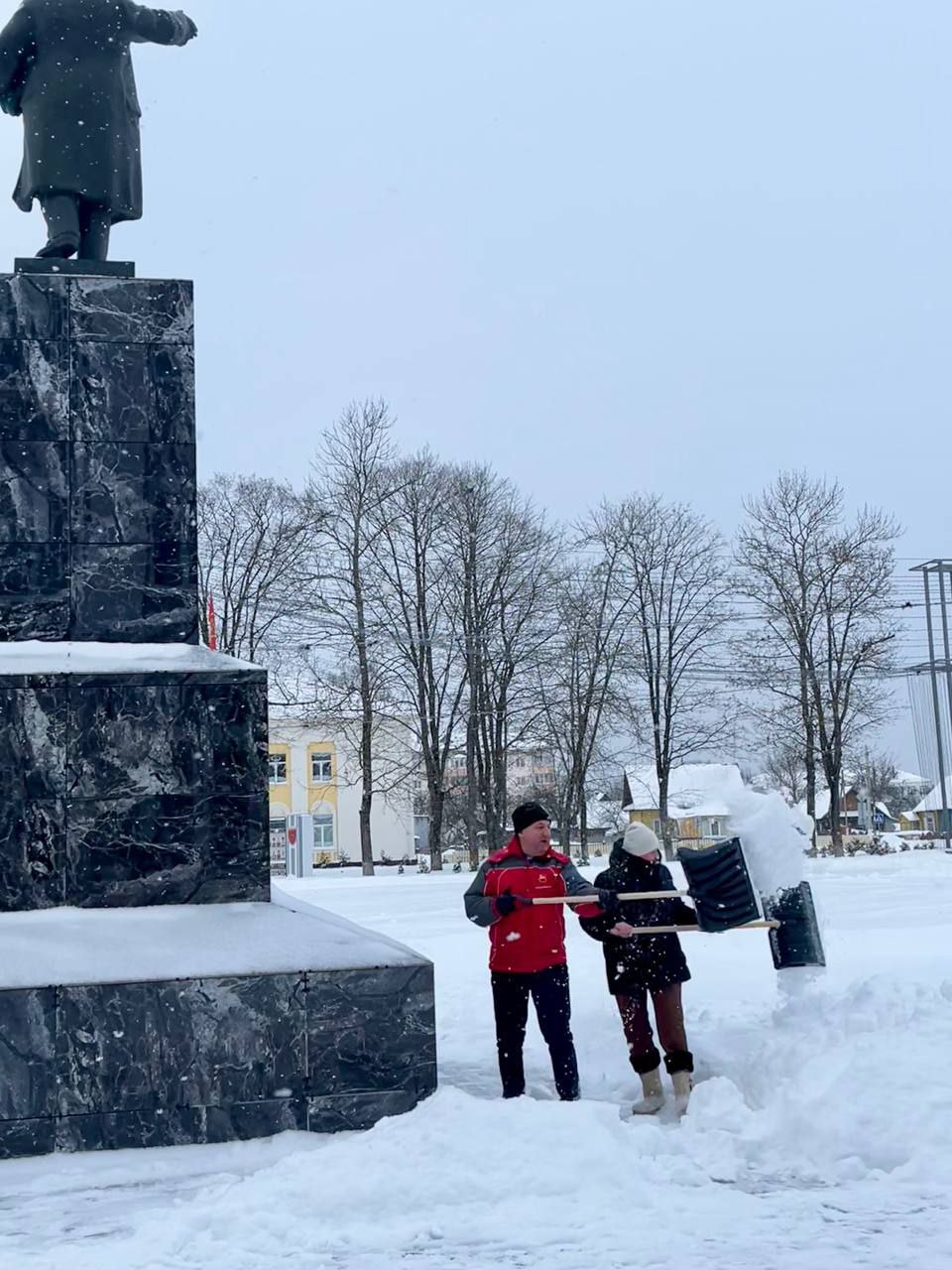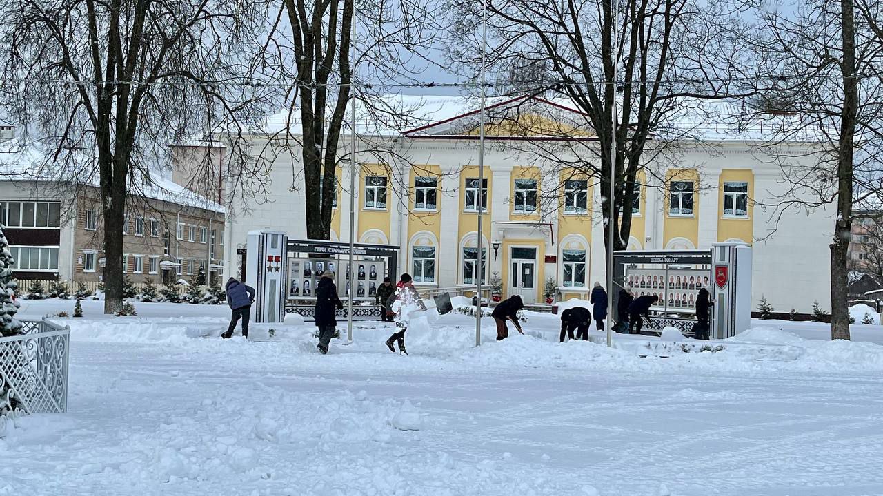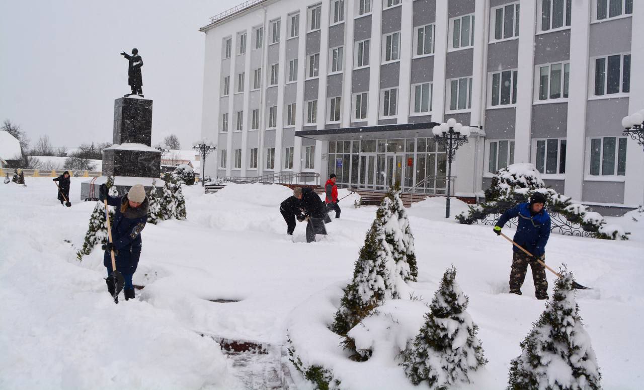 К масштабной уборке снега присоединились сотрудники районной администрации во главе с председателем райисполкома Дмитрием Сосиновичем и председателем районного Совета депутатов Дмитрием Давыдовым.
