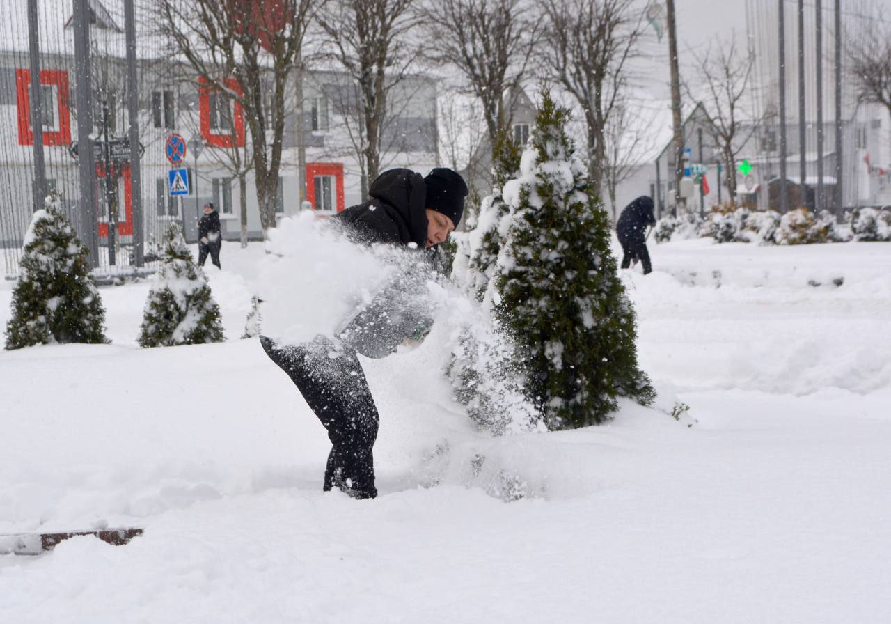 Снежный субботник — дело общее: сотрудники районной администрации вышли на борьбу с последствиями циклона «Улли»