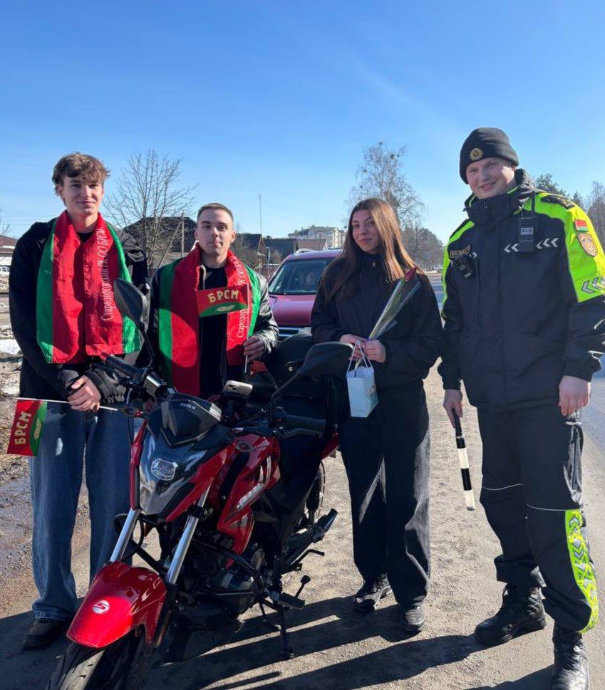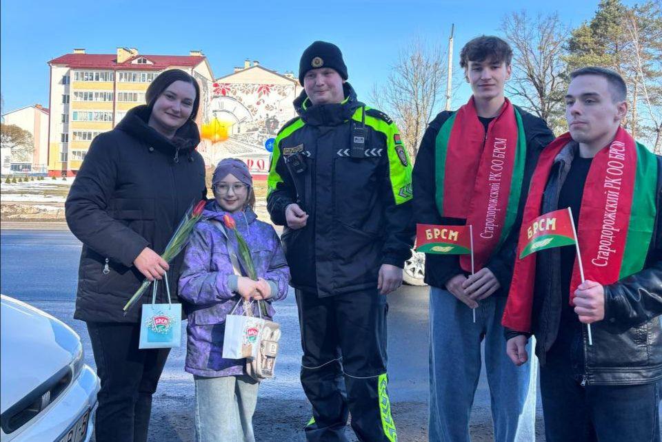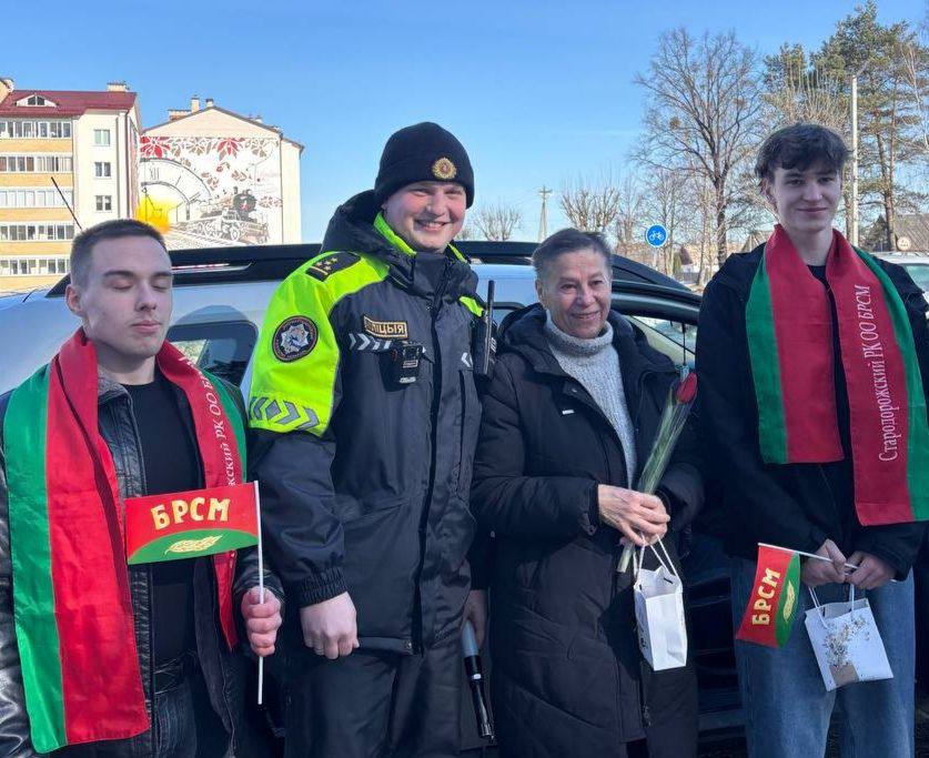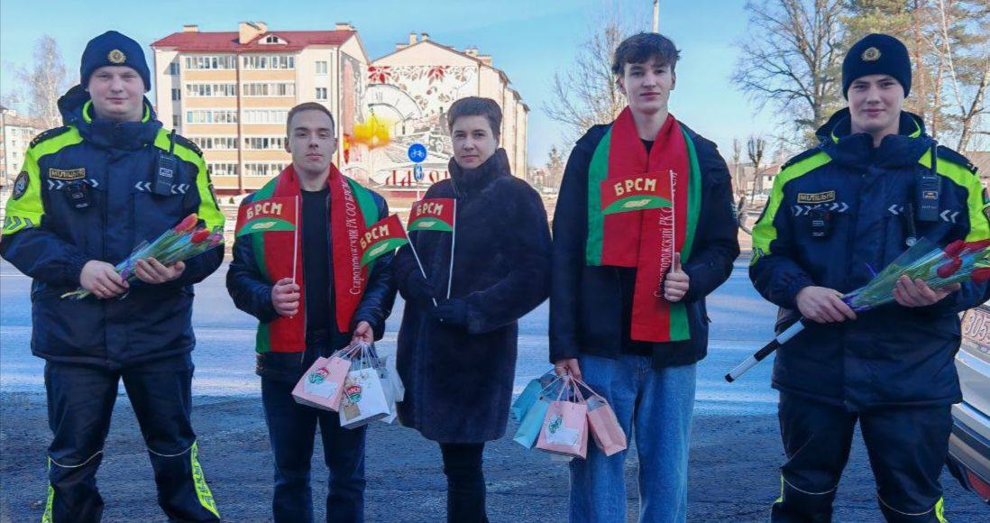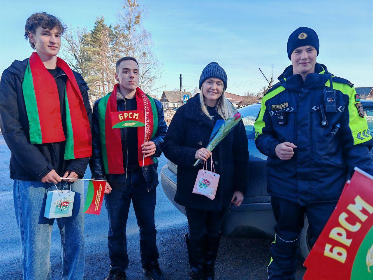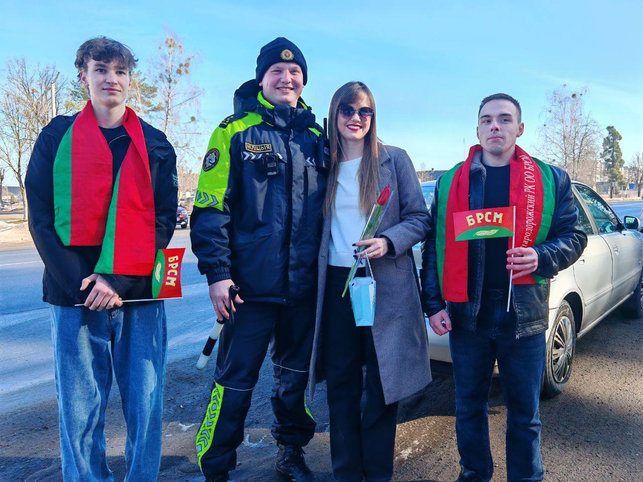 Сотрудники ГАИ Стародорожского РОВД совместно со Стародорожским РК ОО «БРСМ» провели праздничную акцию, посвященную Международному женскому дню.
