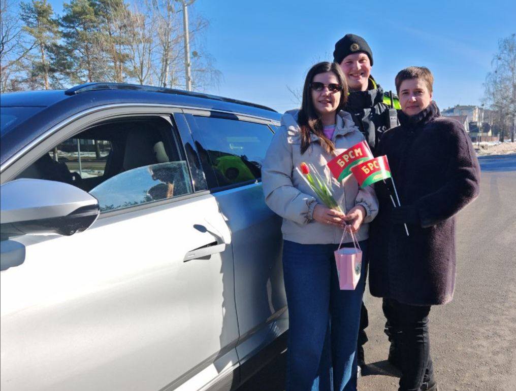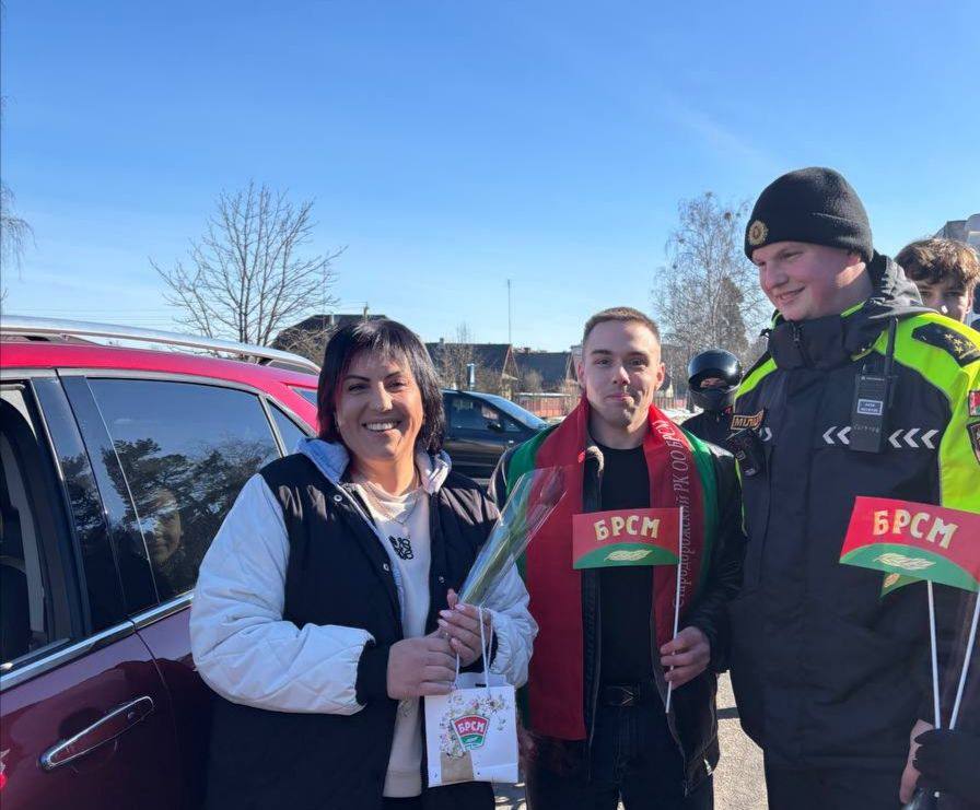 Сотрудники ГАИ и активисты БРСМ дарили цветы женщинам-водителям в честь 8 Марта