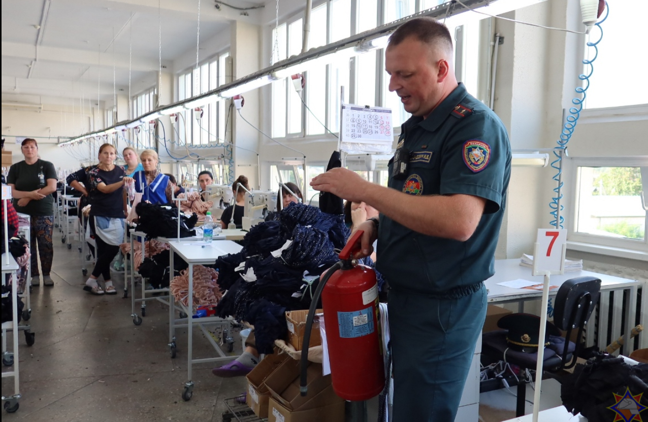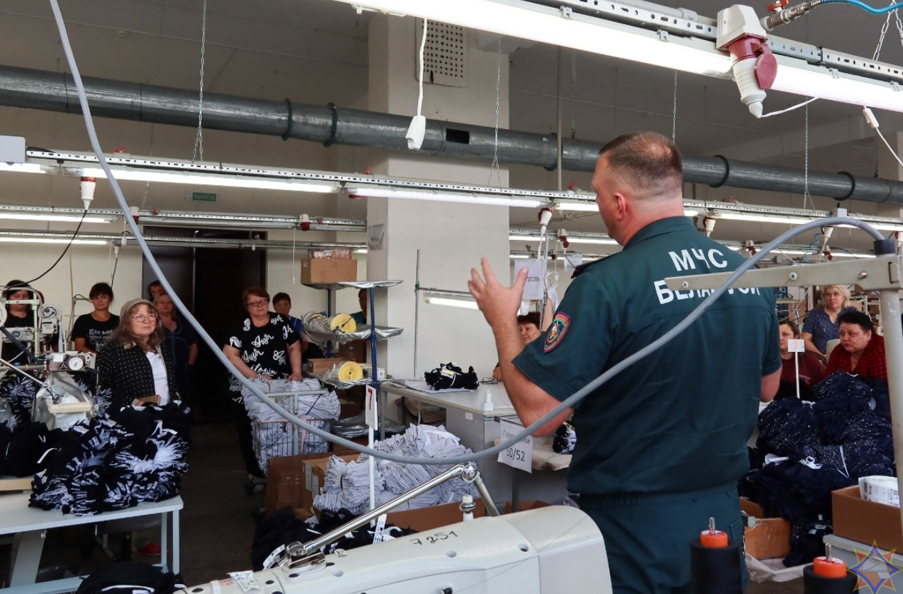 Заместитель начальника Стародорожского райотдела по чрезвычайным ситуациям Илья Давидович встретился с работниками швейного предприятия ООО «Формэль».