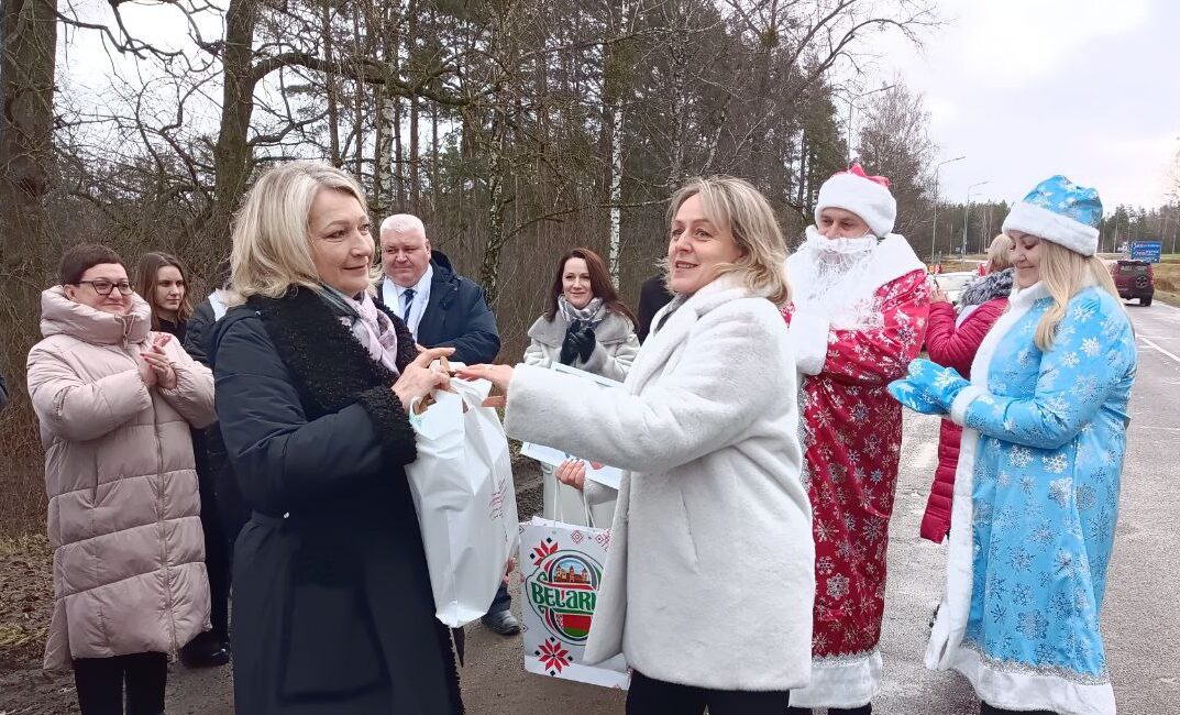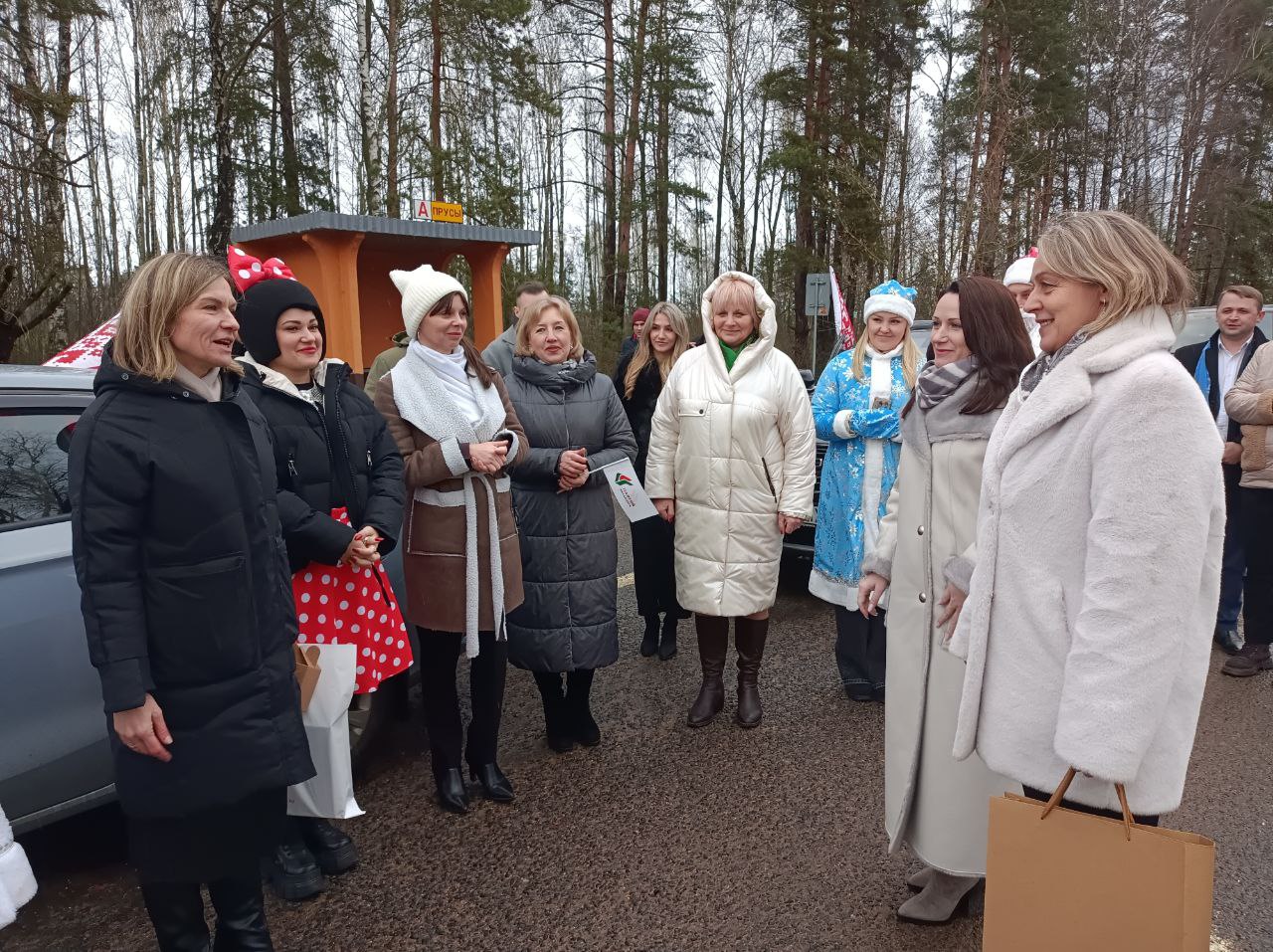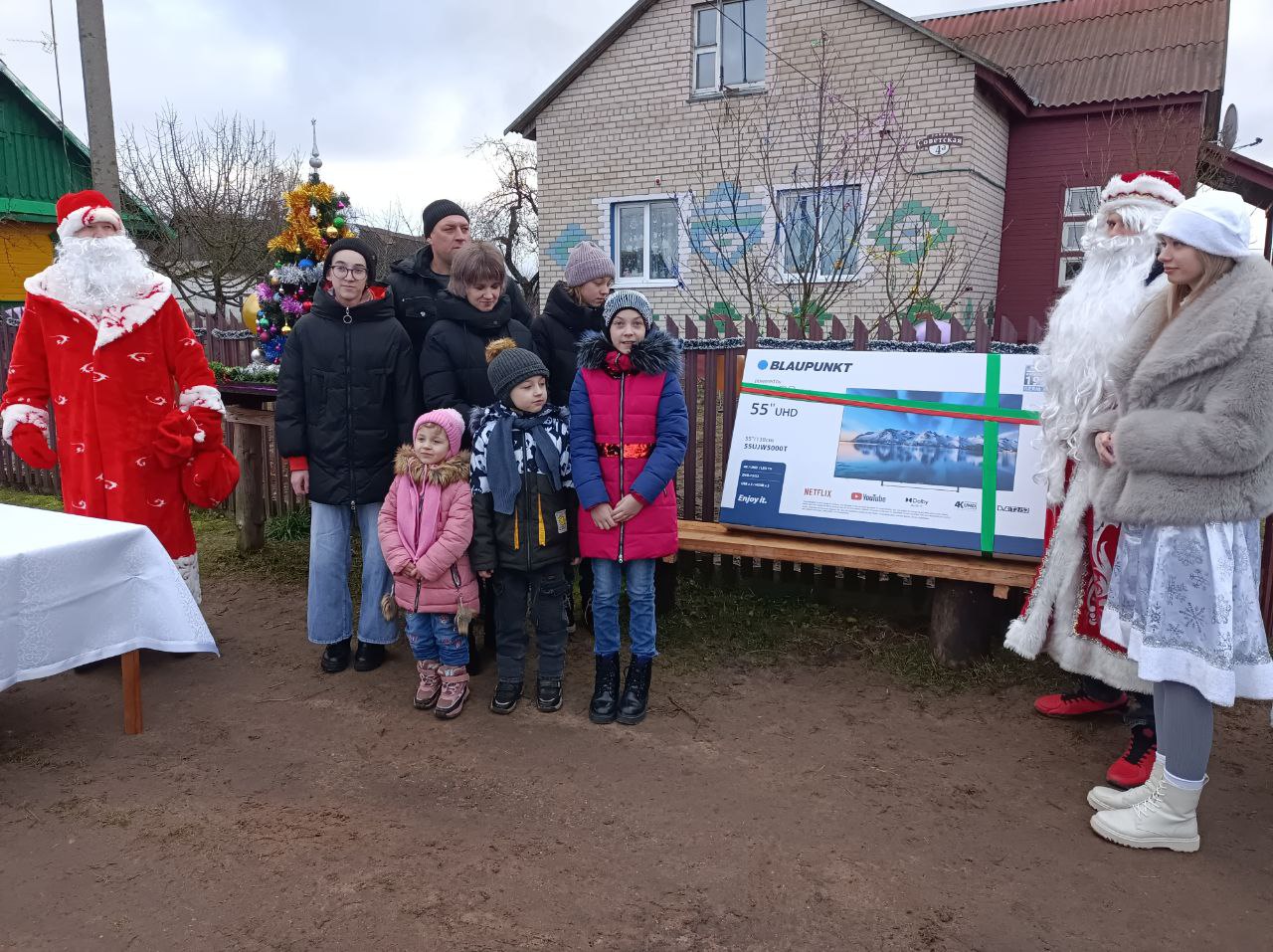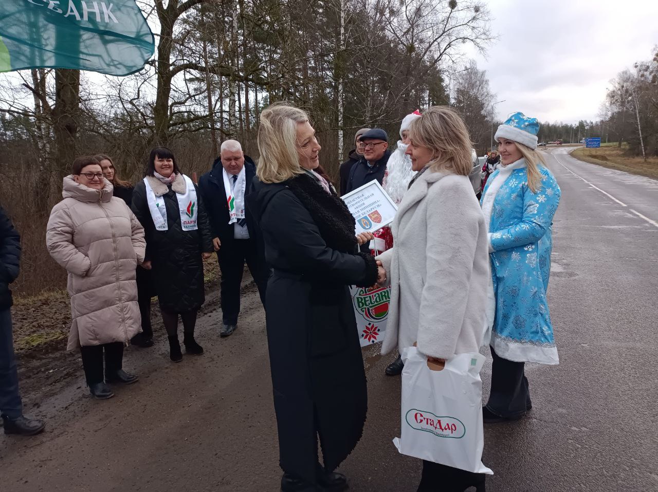 Стародорожане встретили гостей на границе Пуховичского и Стародорожского районов. Приняв эстафету от соседей, участники акции направились в гости к многодетной семье Прановичей в агрогородок Щитковичи. Семье вручили ценный подарок — телевизор, а также устроили большой новогодний праздник с театрализованным представлением.