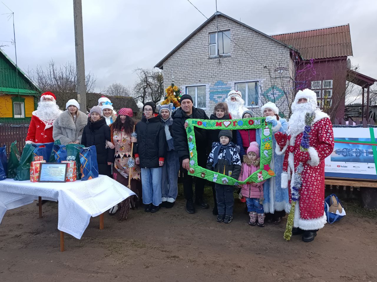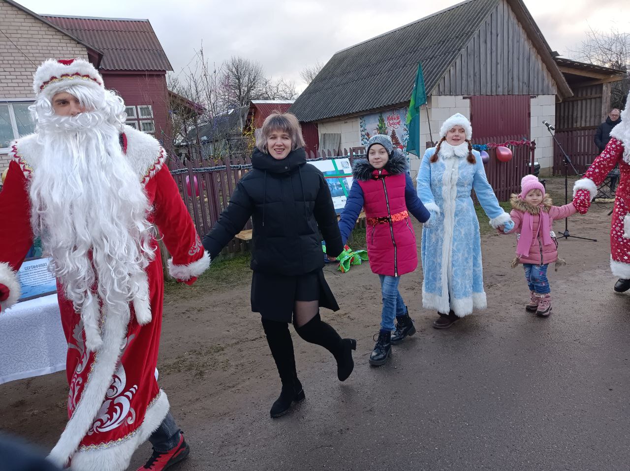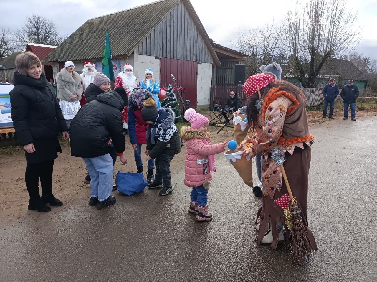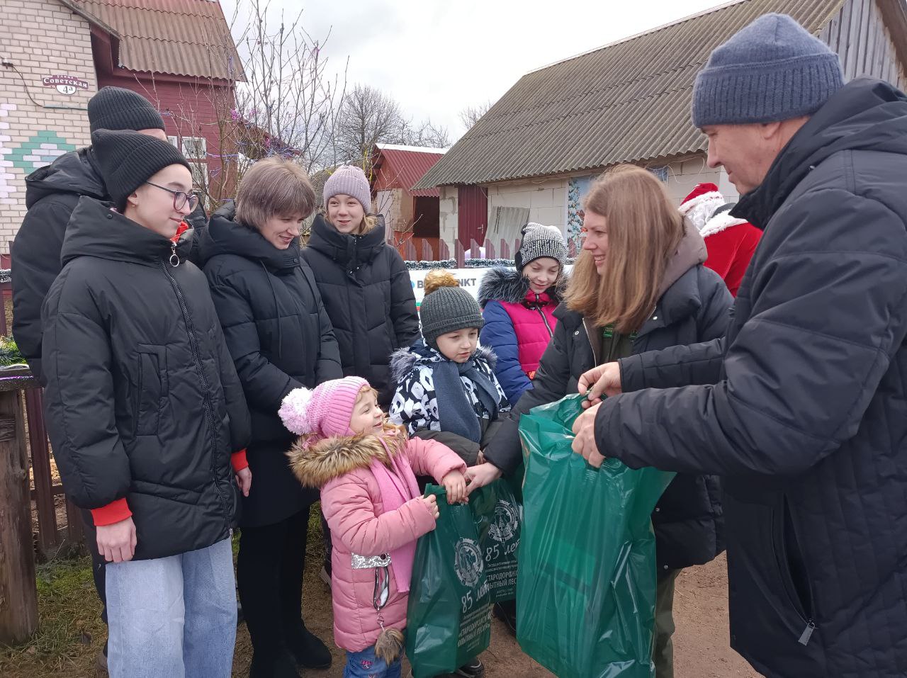 Стародорожане встретили гостей на границе Пуховичского и Стародорожского районов. Приняв эстафету от соседей, участники акции направились в гости к многодетной семье Прановичей в агрогородок Щитковичи. Семье вручили ценный подарок — телевизор, а также устроили большой новогодний праздник с театрализованным представлением.