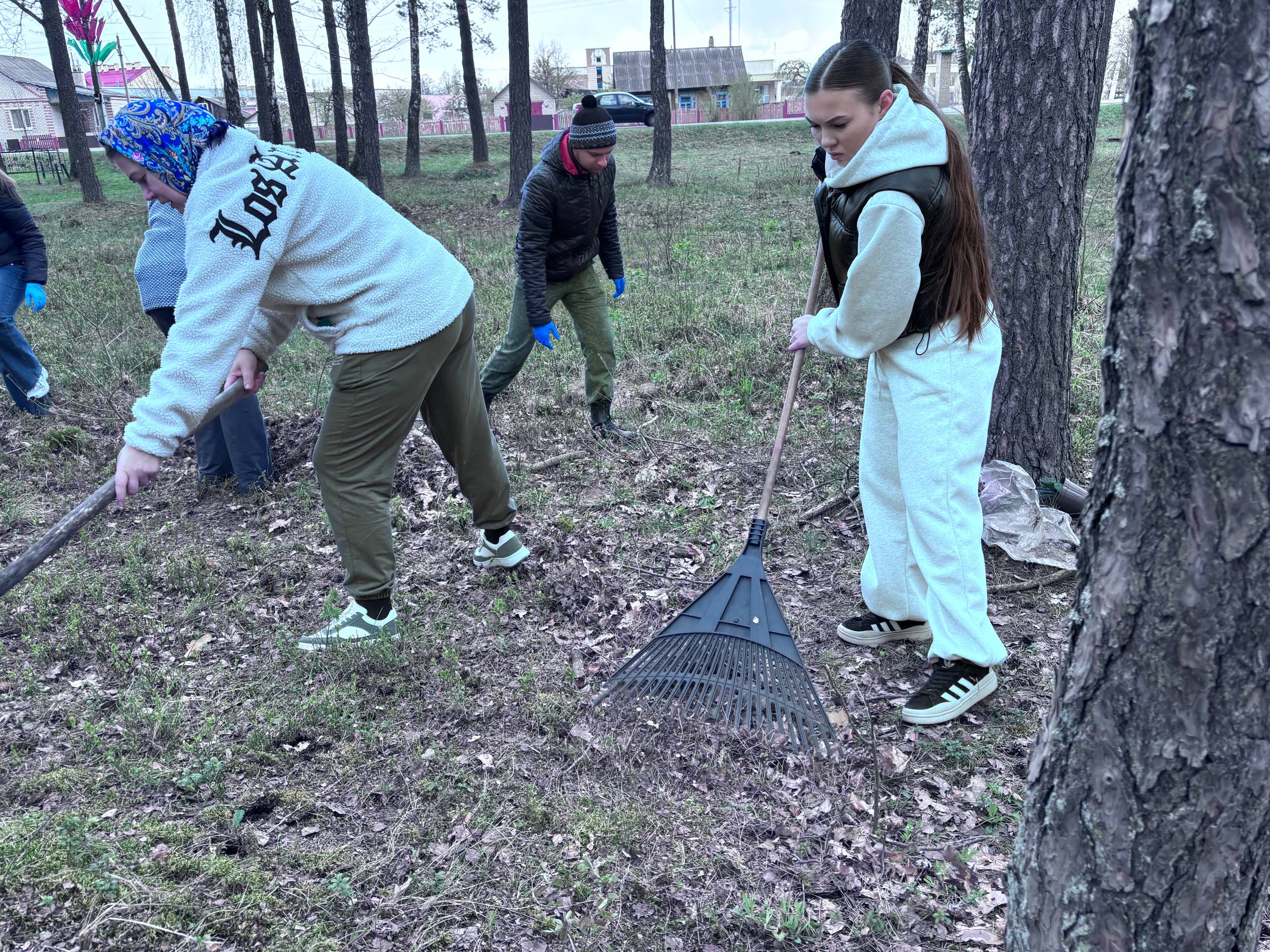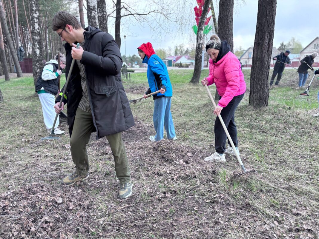 Трудовой десант работал у братских могил советских воинов и партизан в Старых Дорогах. Работа по благоустройству кипела.