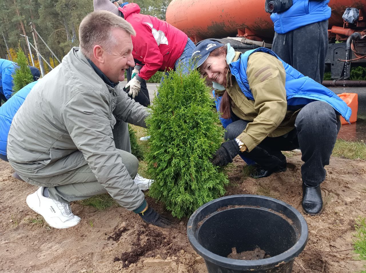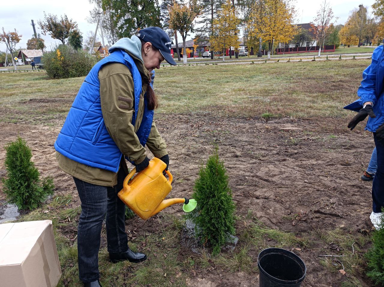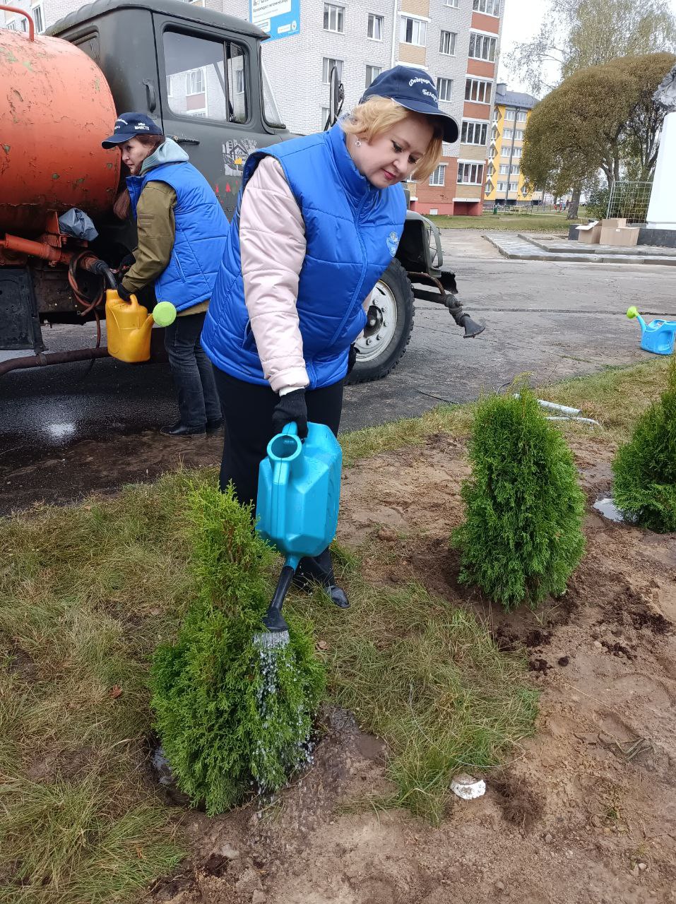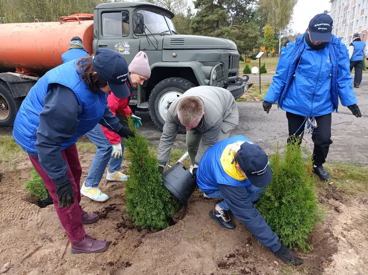 Организация приехала полным составом во главе с председателем Татьяной Гурьевой. Главная цель их визита — помочь озеленить территорию вокруг памятника партизанкам-подпольщицам Анне Королёвой и Софье Бабаковой. Вместе с председателем Стародорожского районного Совета депутатов Дмитрием Давыдовым и управляющей делами райисполкома Ольгой Пархимович гости вдоль дорожки высадили аллею из 70 туй.