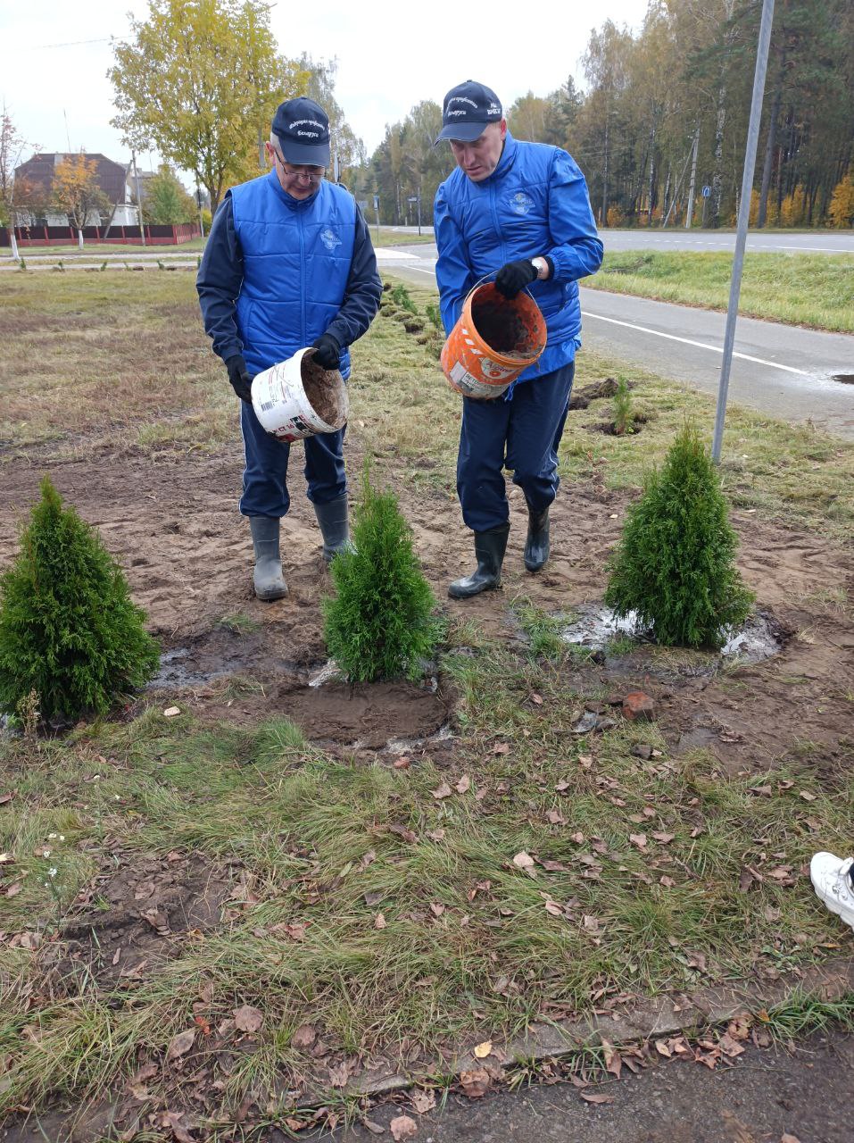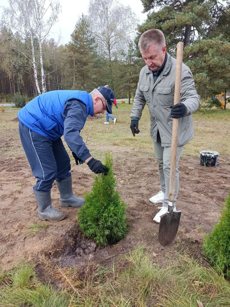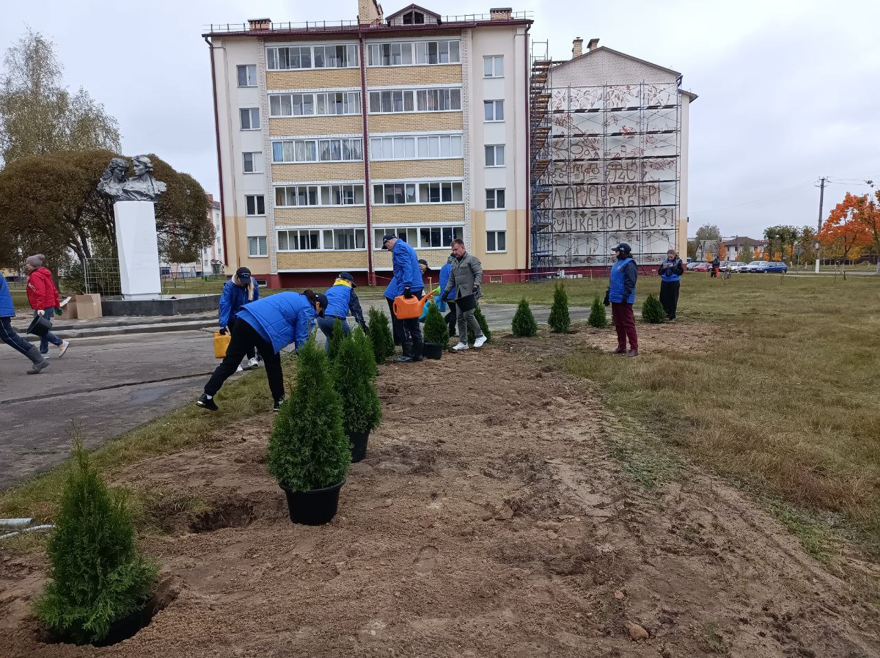 Организация приехала полным составом во главе с председателем Татьяной Гурьевой. Главная цель их визита — помочь озеленить территорию вокруг памятника партизанкам-подпольщицам Анне Королёвой и Софье Бабаковой. Вместе с председателем Стародорожского районного Совета депутатов Дмитрием Давыдовым и управляющей делами райисполкома Ольгой Пархимович гости вдоль дорожки высадили аллею из 70 туй.