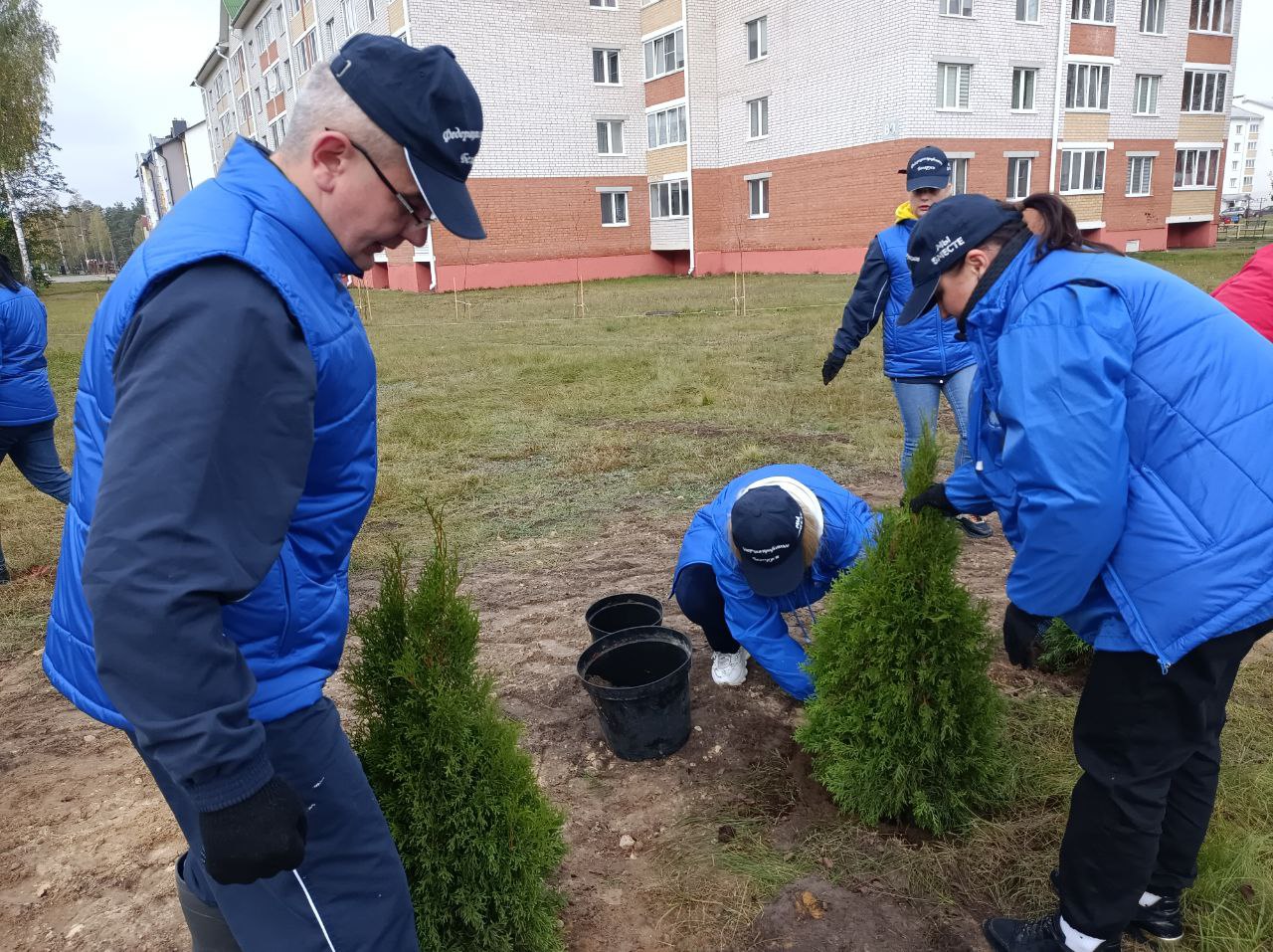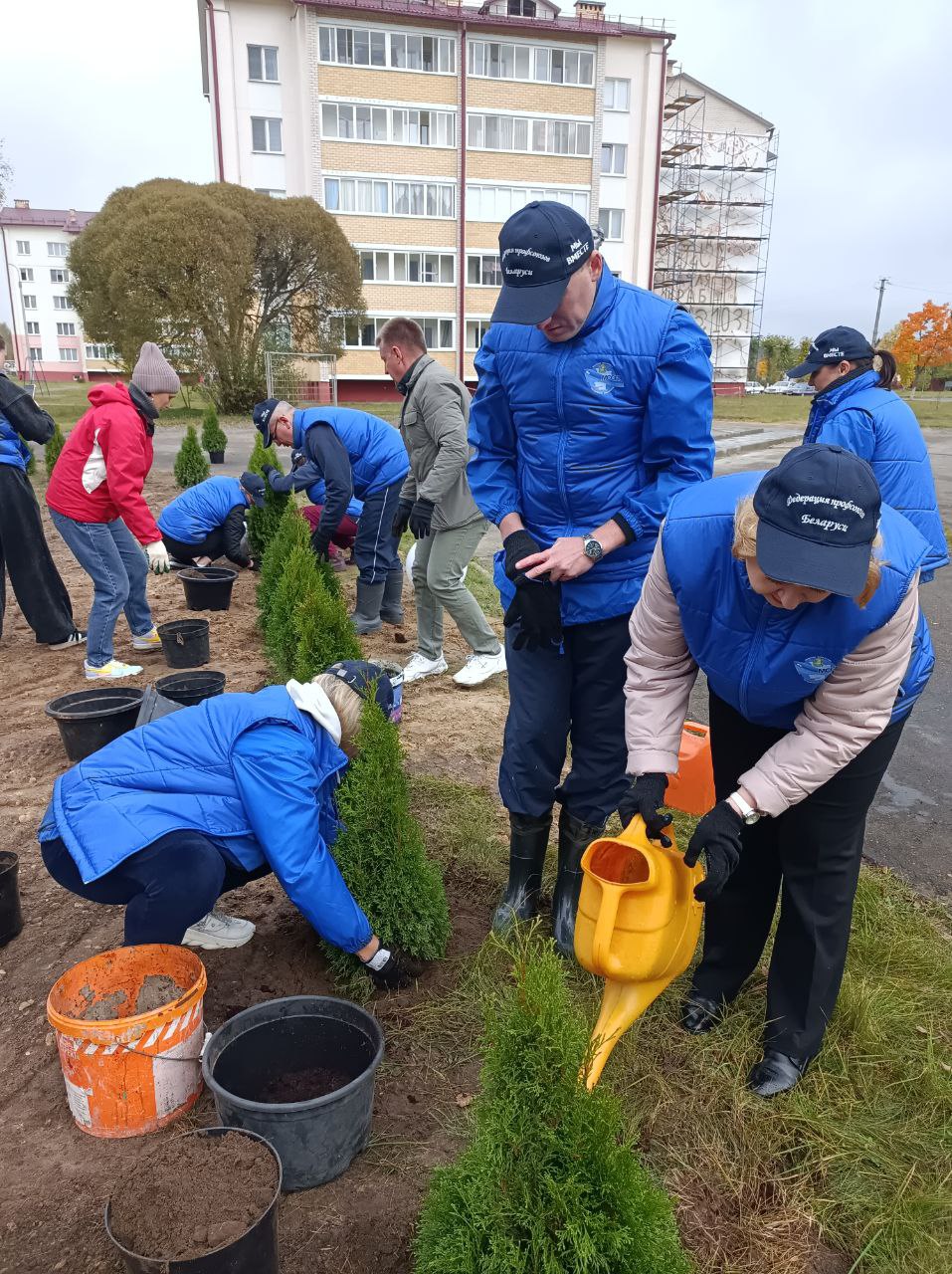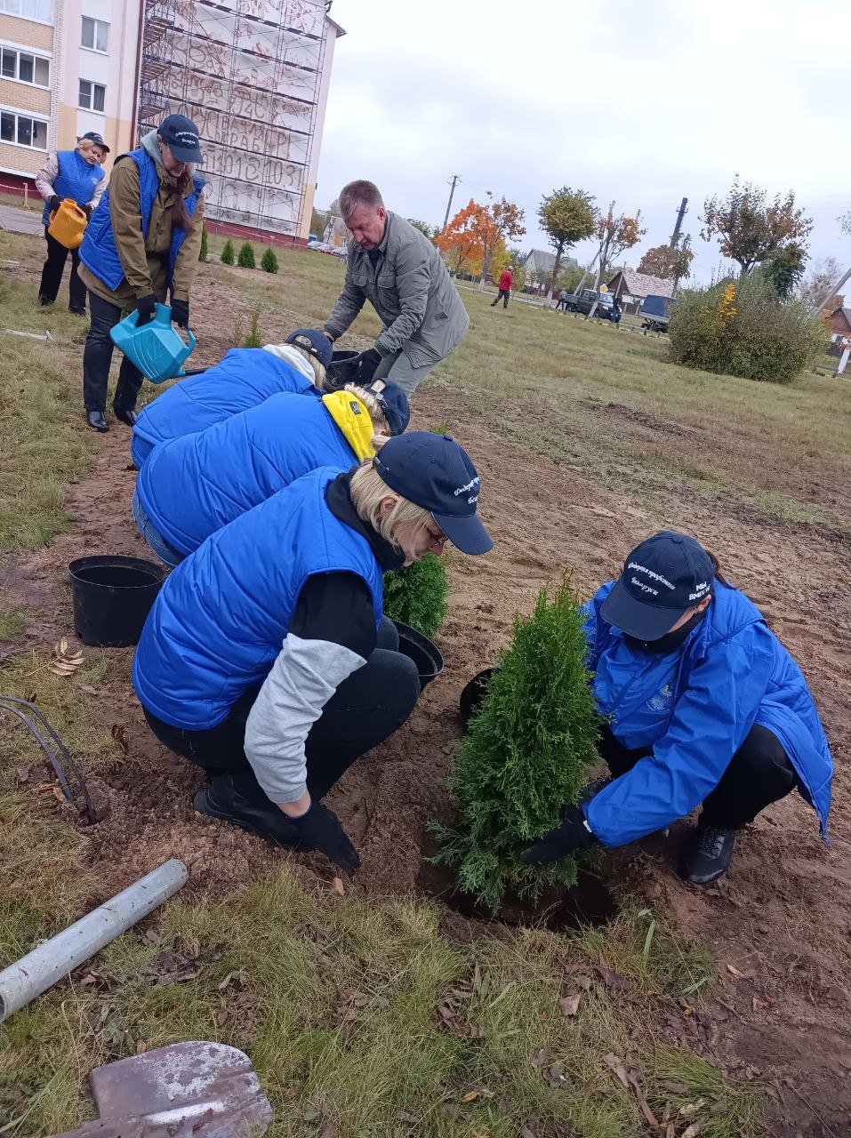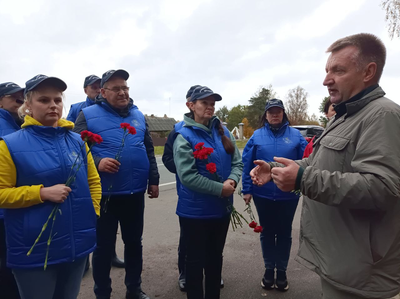 Организация приехала полным составом во главе с председателем Татьяной Гурьевой. Главная цель их визита — помочь озеленить территорию вокруг памятника партизанкам-подпольщицам Анне Королёвой и Софье Бабаковой. Вместе с председателем Стародорожского районного Совета депутатов Дмитрием Давыдовым и управляющей делами райисполкома Ольгой Пархимович гости вдоль дорожки высадили аллею из 70 туй.