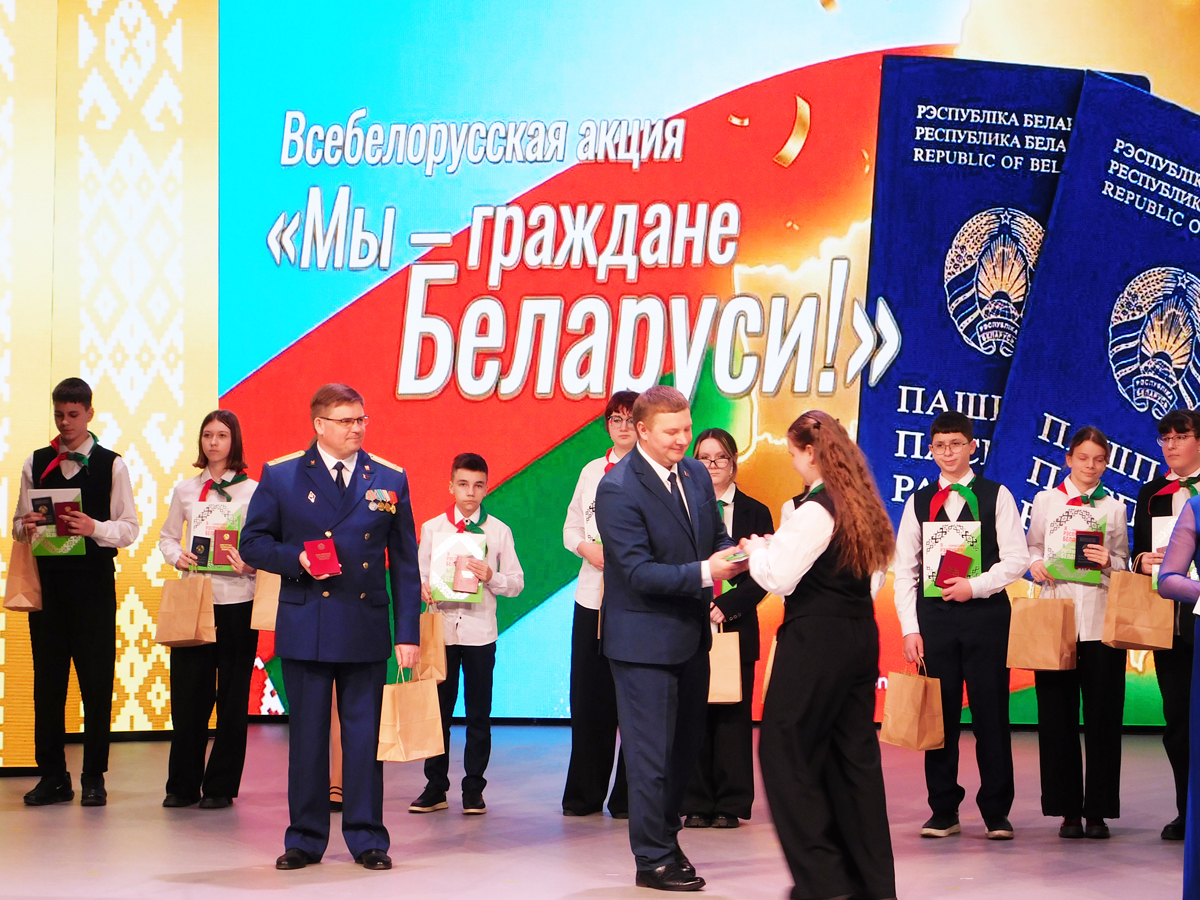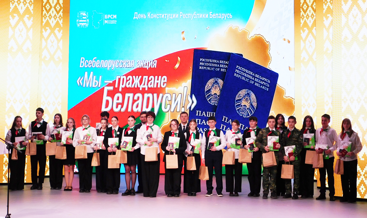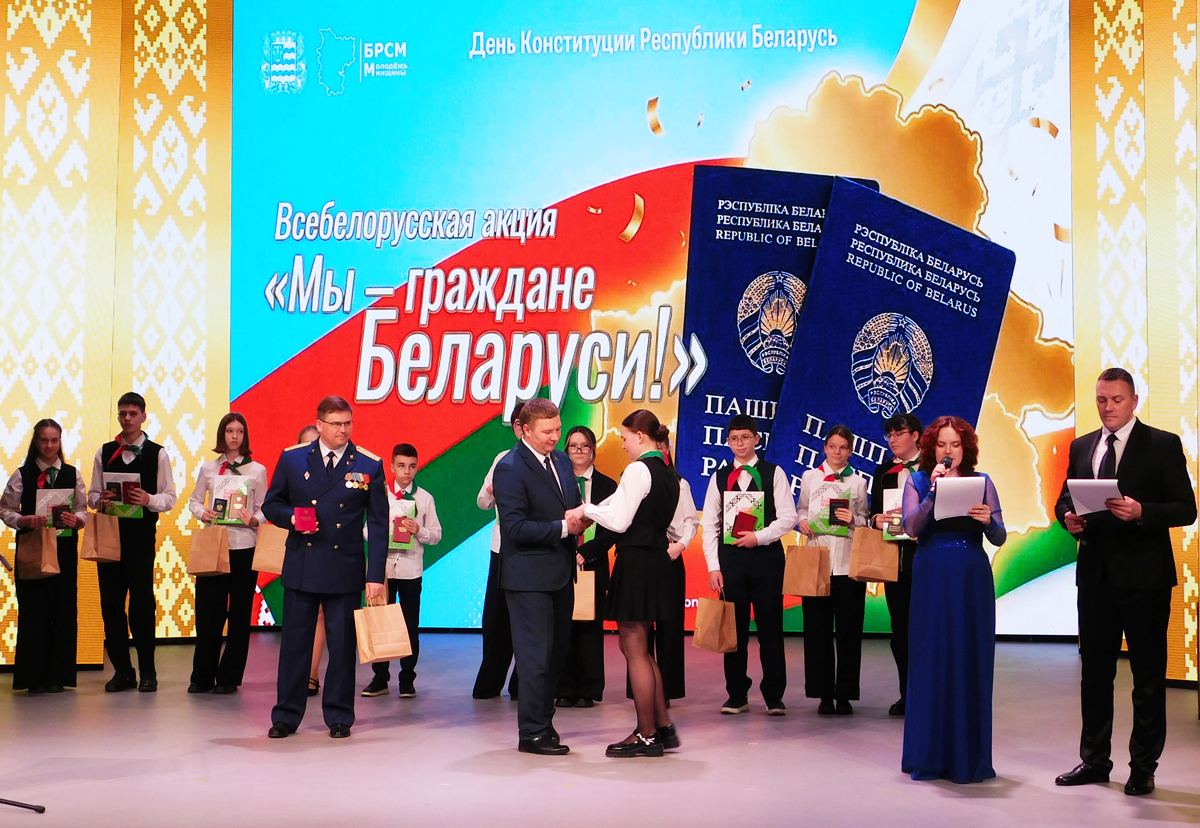 В рамках Всебелорусской акции «Мы — граждане Беларуси!», приуроченной ко Дню Конституции, во Дворце культуры прошла торжественная церемония вручения паспортов. В этот день ряды полноправных граждан страны пополнили лучшие представители учащейся молодежи района.