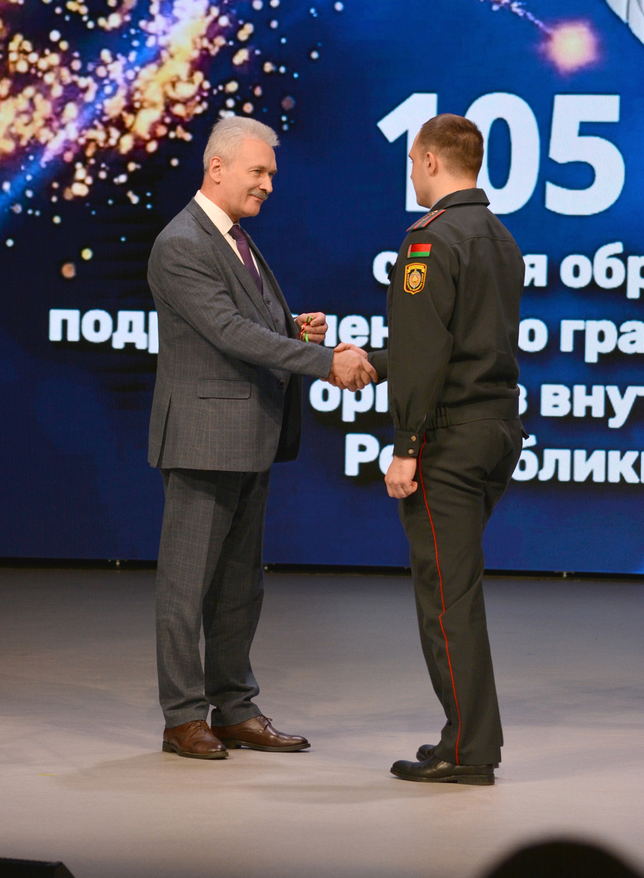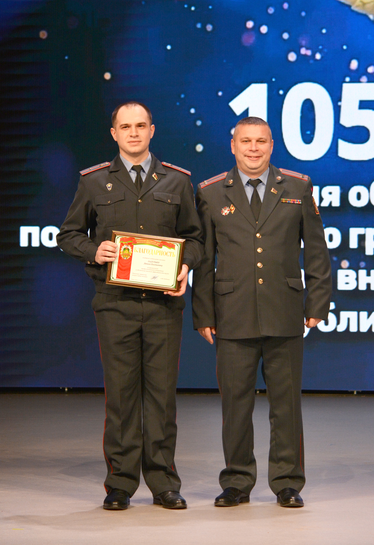 Во время торжества были награждены отличившиеся представители органов внутренних дел. Кроме того, состоялся ритуал вручения погон очередных специальных званий. Правоохранителям передали ценные подарки, а два милиционера под аплодисменты зала получили ключи от квартир в новом арендном доме.