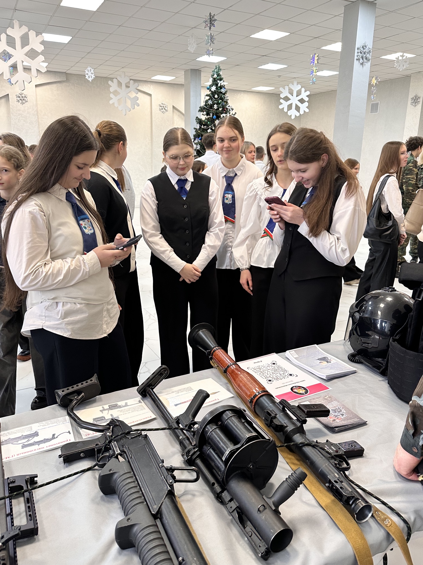 Возле Дворца культуры ребятам продемонстрировали спецтехнику, угощали солдатской кашей, знакомили с работой кинологов. А в фойе сотрудники МВД рассказывали ребятам о своей работе и приглашали после окончания школы вступить в ряды правоохранителей.