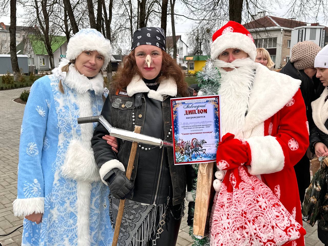 А завершилось мероприятие конкурсной программой «Дед Мороз и Снегурочка-2026», на которой выбирали самых озорных, веселых и креативных сказочных персонажей. Диплом в номинации «Самые артистичные сказочные персонажи» получил детский сад №4. Победитель в номинации «Самые артистичные Дед Мороз и Снегурочка» — ОАО «Залужье», в номинации «Самая креативная команда» — центр коррекционно-развивающего обучения и реабилитации, в номинации «Самый оригинальный символ года» — Горковская средняя школа, в номинации «Самый большой мешок Деда Мороза» — Щитковичская средняя школа, в номинации «Самая красивая Снегурочка» — Стародорожский райагросервис. Ну а абсолютными победителями стала команда сказочных персонажей детского сада №2.