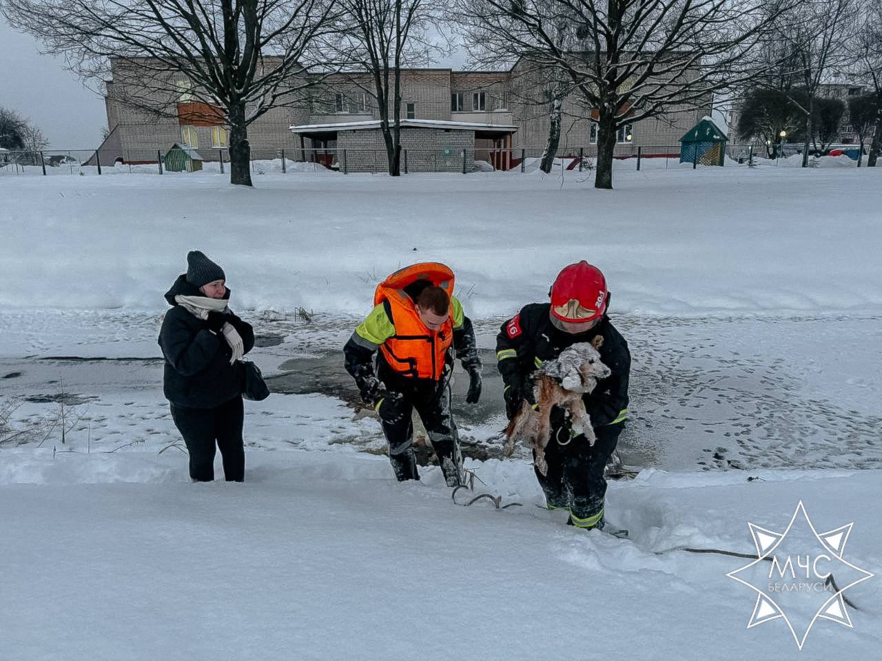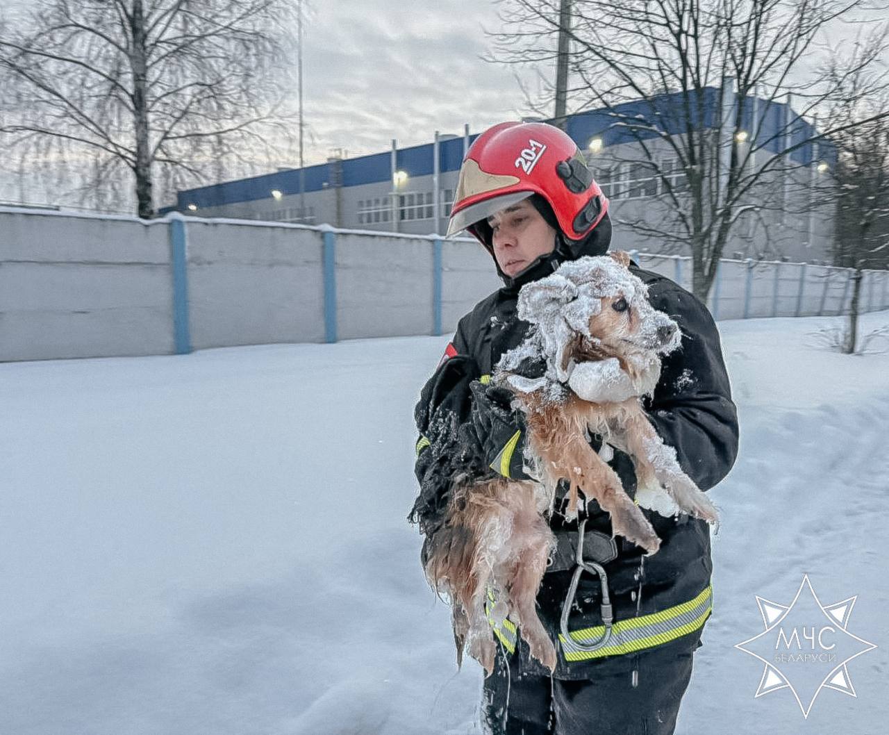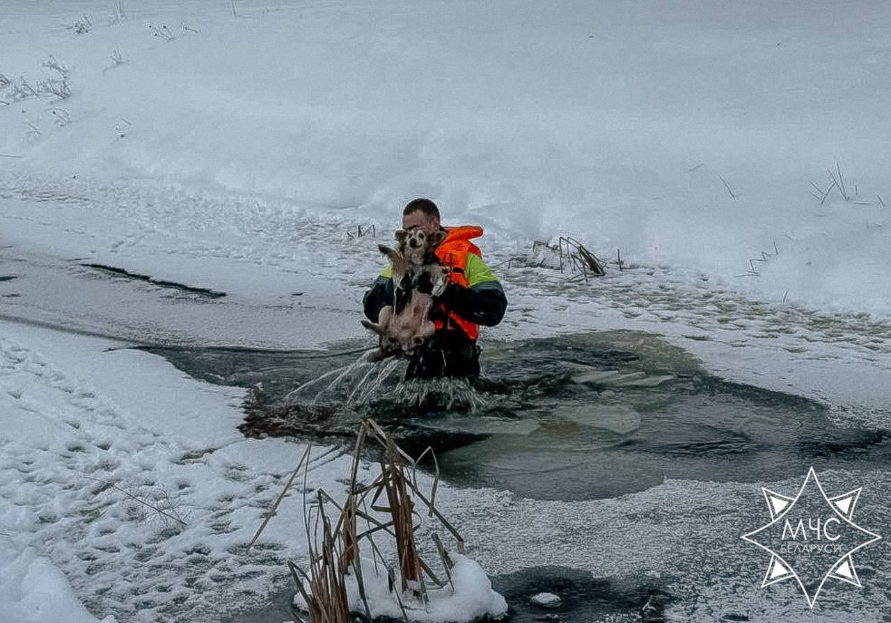 13 января в Старых Дорогах развернулась настоящая спасательная операция: сотрудники МЧС пришли на помощь тонущей собаке.
