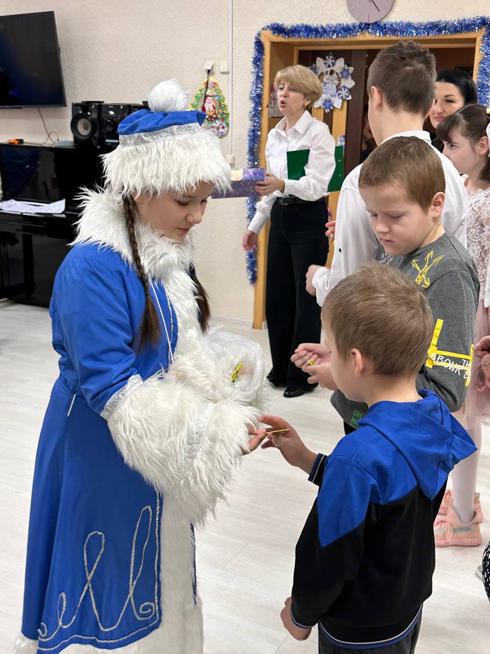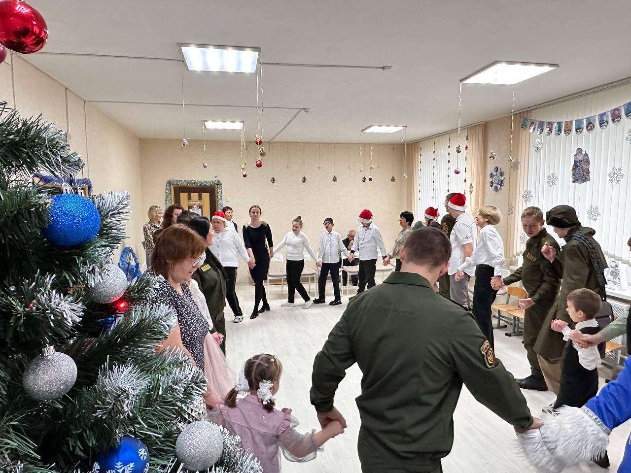 Офицеры приехали не с пустыми руками, а с традиционными сладкими новогодними подарками. Также в приют они привезли два комода, а в центр — спортинвентарь и развивающие игры. С неподдельным удовольствием ребята водили хороводы и участвовали в новогоднем представлении.