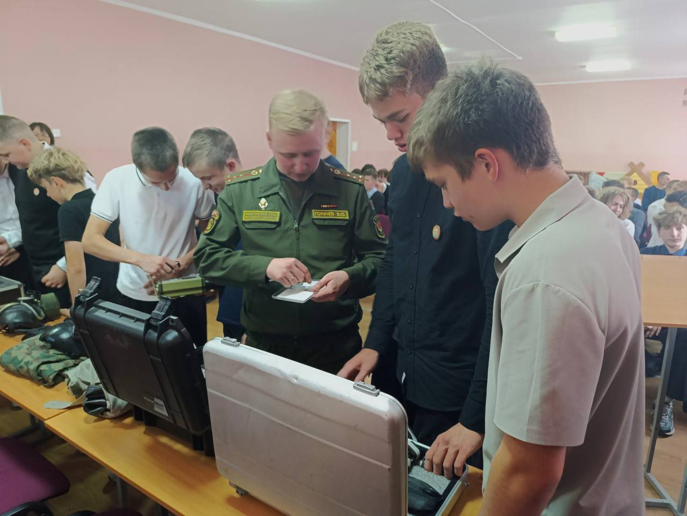 Военнослужащие 8-й Варшавской ордена Красной Звезды бригады радиационной, химической и биологической защиты посетили школу города Ветка, где провели агитационную работу по привлечению молодых людей на военный факультет Белорусского государственного университета (БГУ).